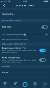 The configuration of these functions is done via the Alexa App, which also provides a three-band equalizer. One useful feature is the possibility to communicate with just one earpiece, and the automatic pause of music playback with the removal of the earpiece is convenient.