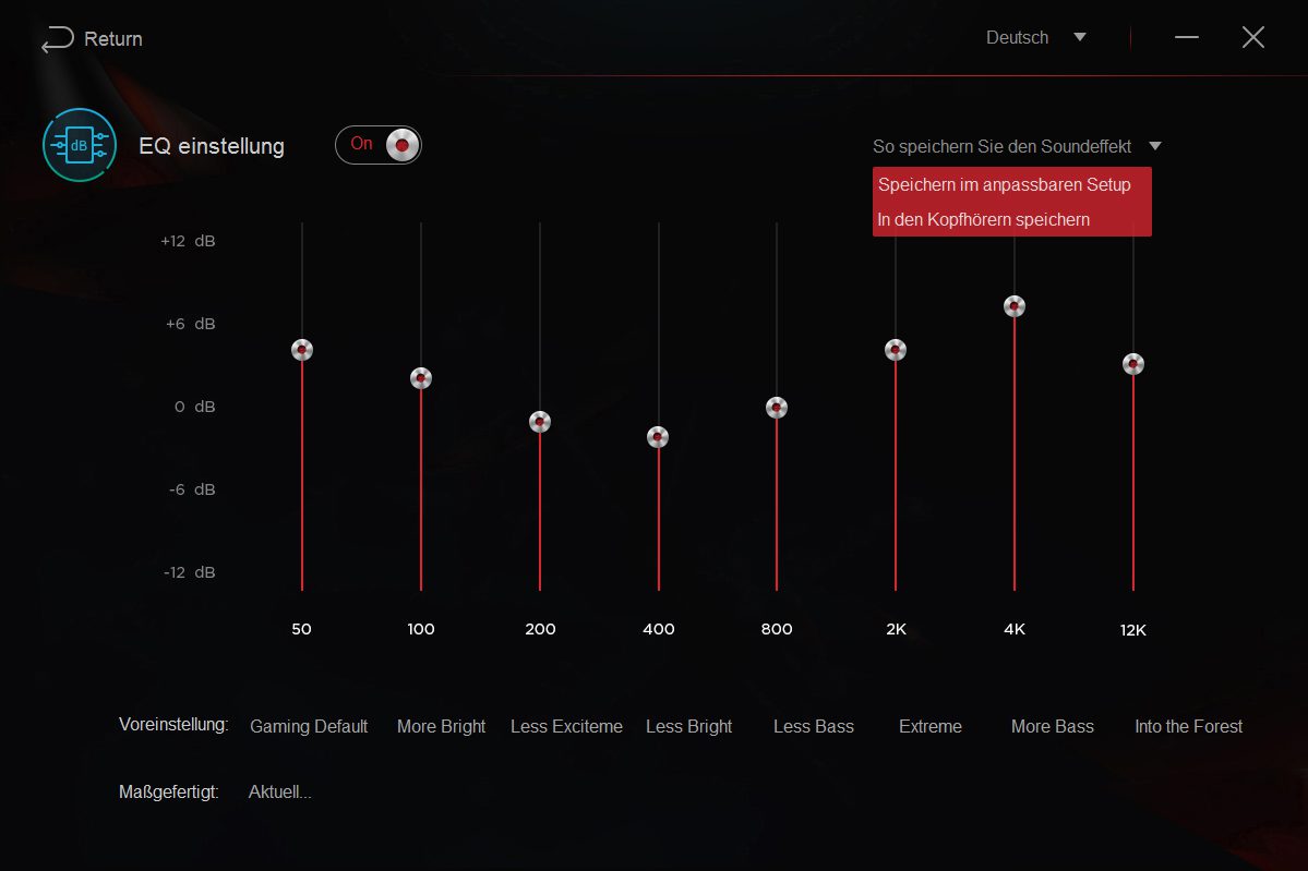 Before I start a game, I always listen to some music first, and the Spearhead VRX does very well here. With the right settings in the EQ, paired with the boost in bass, i.e. the vibration, you can create a nicely balanced sound. The EQ presets are quite good starting points to find a sound that’s appealing to the ears. However, you have to be a little careful when it comes to the boost. At first, I thought that the device was defective, but the vibration was set to 100%. You should also always keep an eye on the volume, with the headphones having plenty of capacity in this respect! Without activated EQ and vibration, the sound can’t really convince me. Only profiles created within the EQ delivered results half as good without vibration effects, i.e. the bass boost. Ultimately, a combination of both counts here.