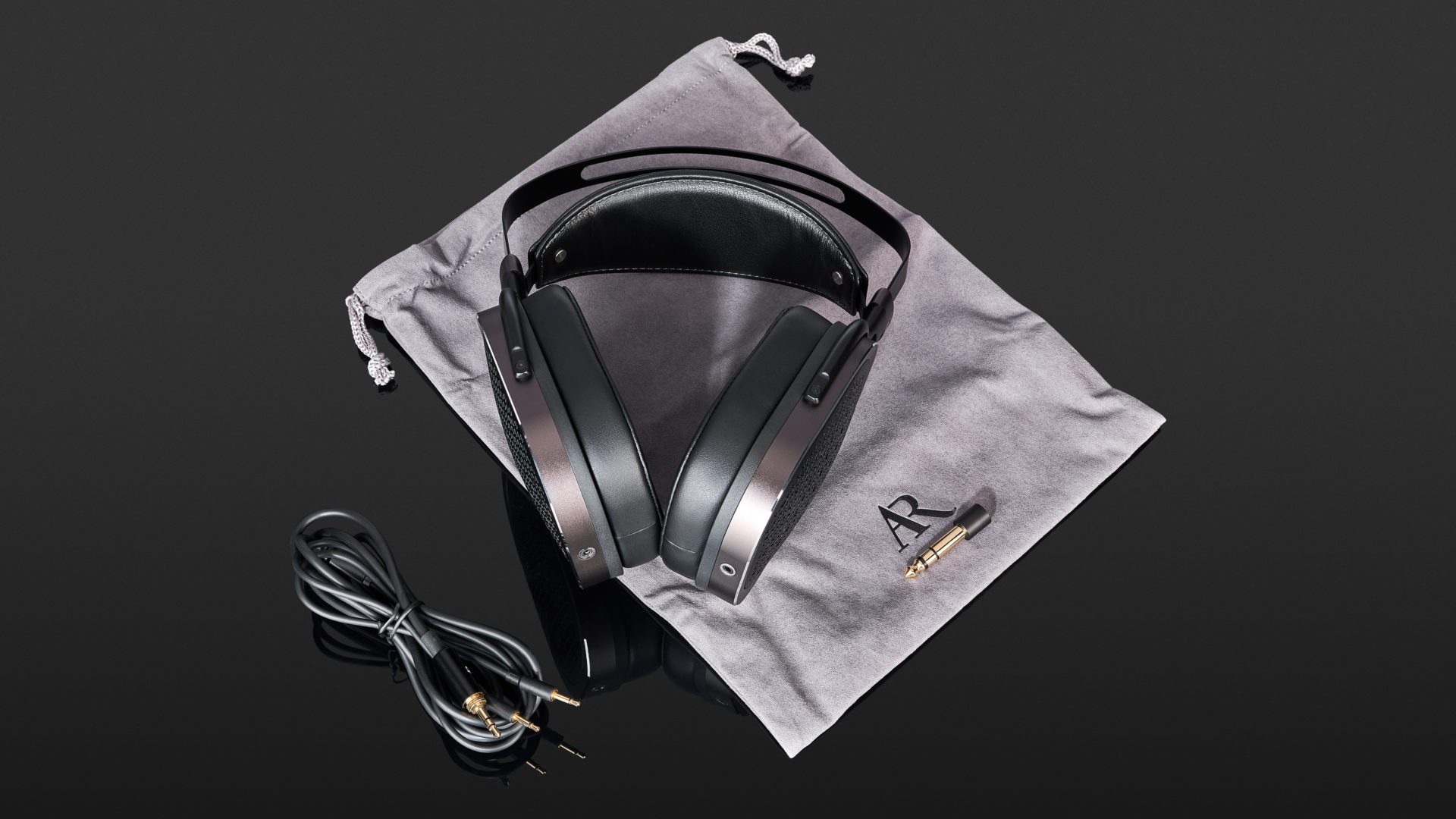 The AR-H1 comes in a functional and adequate cardboard box with custom-fit foam cut-outs for the headphones. This includes the headphones themselves, a 1.2 m long headphone cable, a screw-on 6.3 mm jack adapter, a fabric bag for transport and a slimmed down, multilingual user manual.