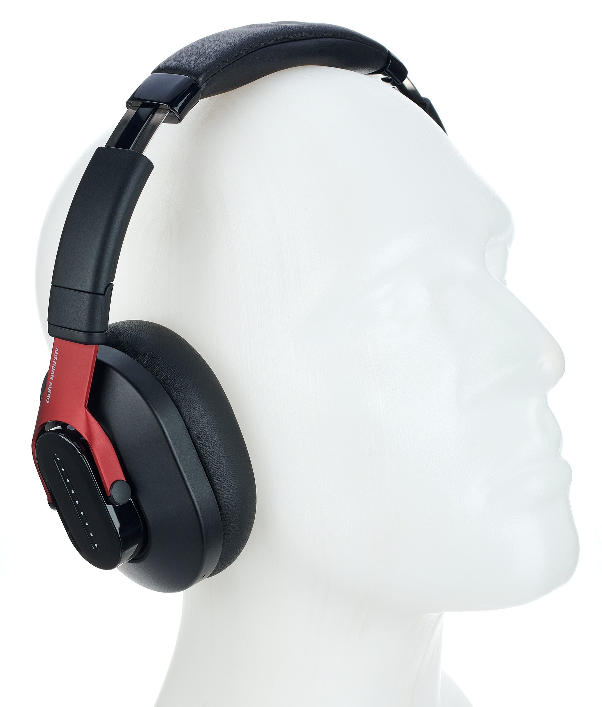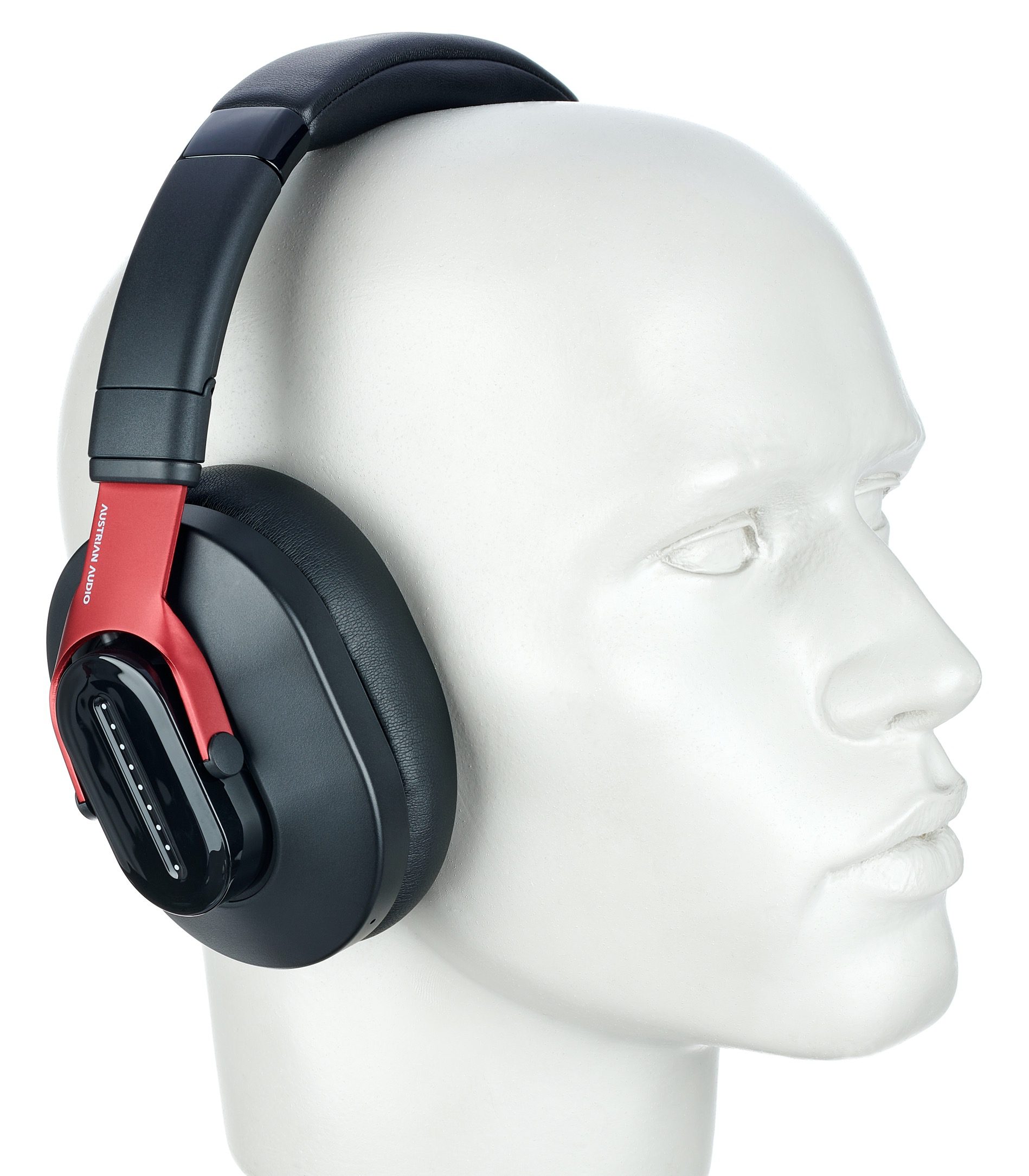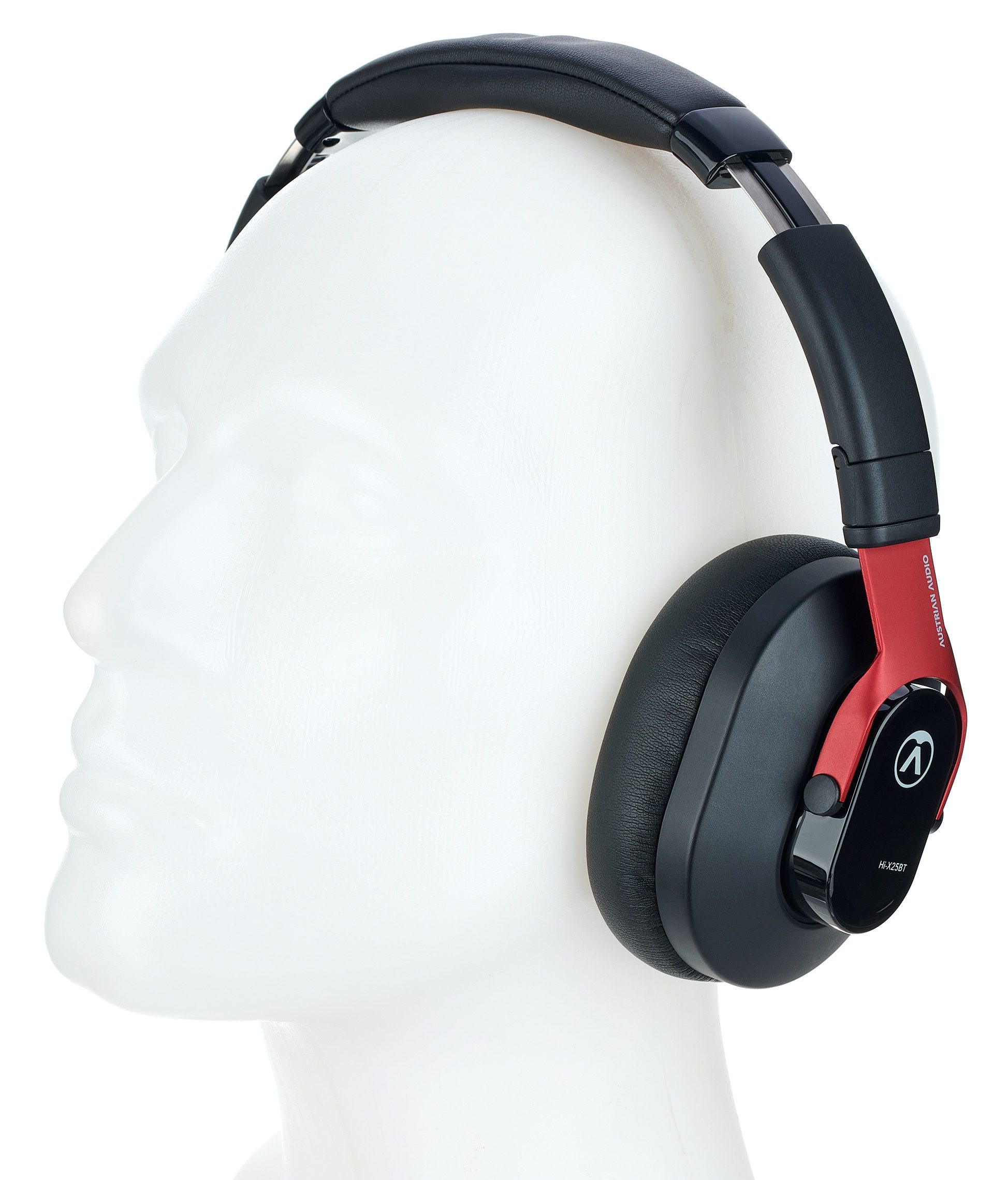 The exterior of the ear-enclosing, closed-back Austrian Audio Hi-X25BT is similar to that of their little sister, the Hi-X15. However, the Hi-X25BT lacks that model’s silver trimmings. Instead, the corresponding components are finished in black, but the striking dark red metallic of the forks is identical. This gives the headphones a look that is both classy and contemporary.