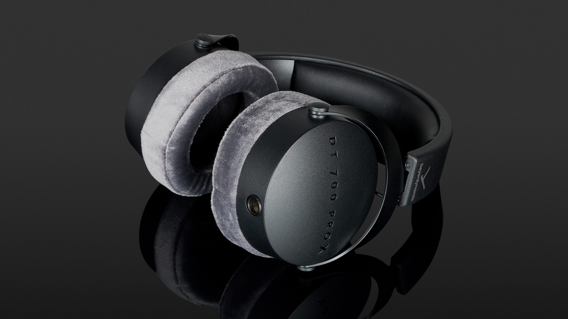 The closed-back Beyerdynamic DT 700 Pro X shares the styling of models like the DT 770 Pro and the DT 1770 Pro. As such, they seamlessly join the ranks of Beyerdynamic classics and newer models. Differences in the design include the discreet appearance of the model name, which appears in shiny letters on the matt black ear cups. The swivelling earcup mounting has been developed further compared to the DT 1770 Pro and is now even more arched. The transition from the spring steel bracket to the headband casing is particularly elegant. Despite this unobtrusive solution, the screw connection still gives you the option of being able to carry out maintenance.