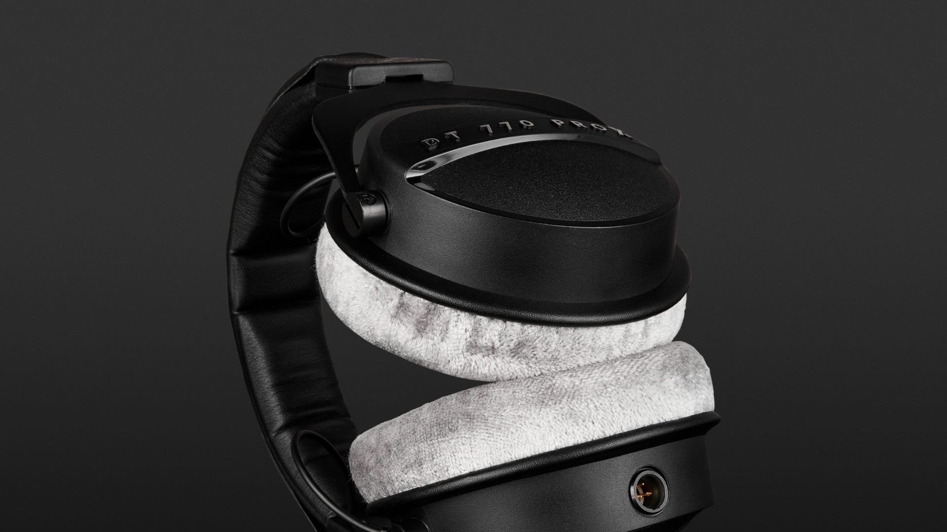 But if you take a closer look, you will recognise the differences in the details: For example, the dates and the legend “limited edition” appear in shiny silver at the base on both sides of the headband. The model number is emblazoned in silver in a distinctive horizontal bar across the outside of the earcups, something which is not on the standard DT 770 Pro. Another difference is that the rather thick headband padding is slightly thinner at the highest point, so it doesn’t bunch up as much as on the original model, thanks to the curvature of the headband. From a technical point of view, these headphones are based on the DT 770 Pro’s successor, the DT 700 Pro X. Like the DT 700 Pro X, these also have an interchangeable cable. And just like the two standard models, the Limited Edition also has a single-sided cable.