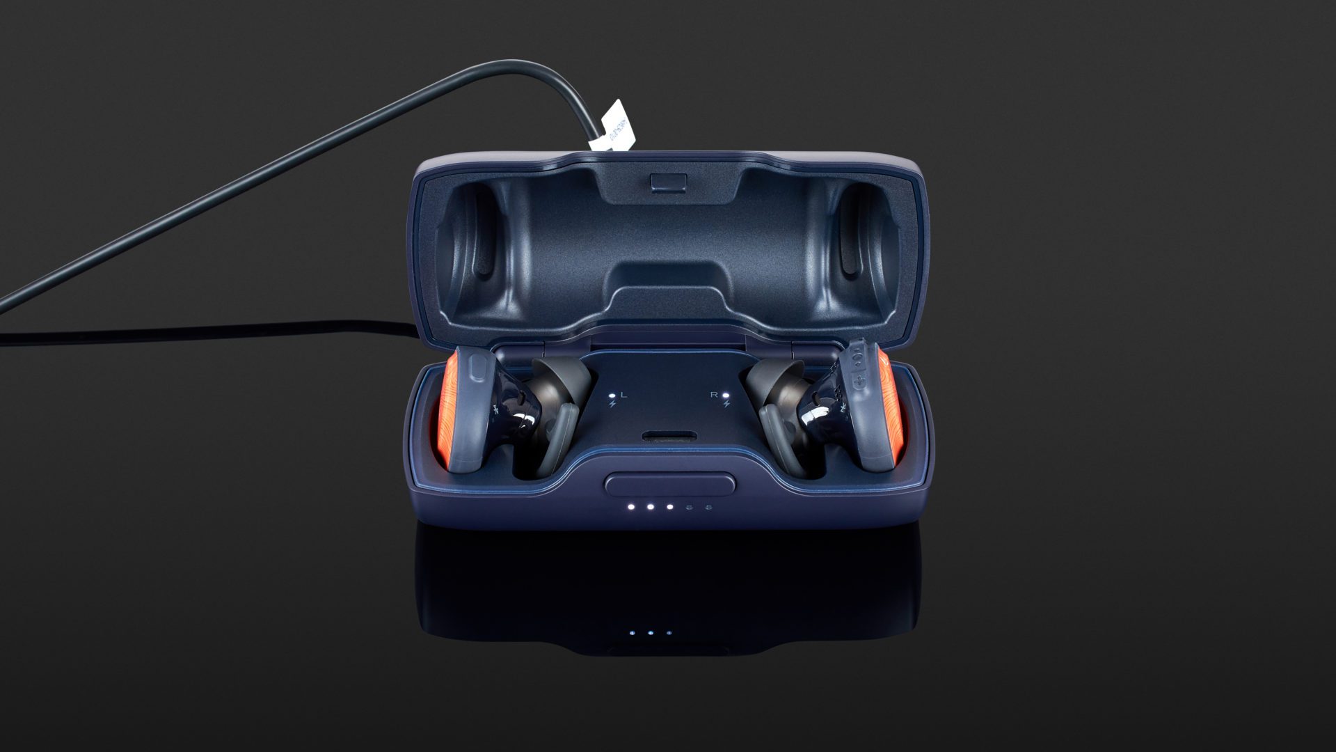 Bose likes to deliver in large boxes. In this case, the headphones are framed by glossy pictures of sporty people, immediately placing them in the desired lifestyle context. In fact, you immediately feel that more than headphones are sold here. There is a case, which is the charging and parking station of the earbuds, three pairs of earpieces in S, M, L, the relevant documentation and the charging cable for the case. The earbuds are oval and made out of strong plastic, and are both sweat- and rain-proof.