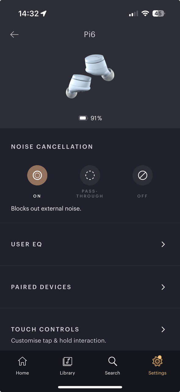 The clean Bowers & Wilkins app communicates with the Pi6 in an even more streamlined version. For example, it lacks a charge indicator and, disappointingly, the EQ only allows you to adjust bass and treble (rather than the five bands on the Pi8).