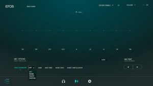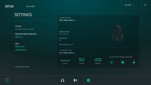 Once the connection is established, not only can updates be carried out and the language selected, but the sound can also be adapted to one’s own needs. You can either use one of the four presets (“Flat”, “Movie”, “Esport”, “Music”) or use the nine-band equaliser, each of which can be adjusted by ±6 dB. Of course, it is possible to save and use your own EQ settings. The audio playback can also be set from 2.0 to 7.1; this activates control of the sound reverberation. If this is set to 100%, however, the sound becomes unattractive to the point of unusable. In the right measure, it immediately gives the impression of being more realistic. In terms of sound, EPOS H3PRO Hybrid’s virtual 7.1 surround sound is one of the better ones because the artificial room sounds quite good.