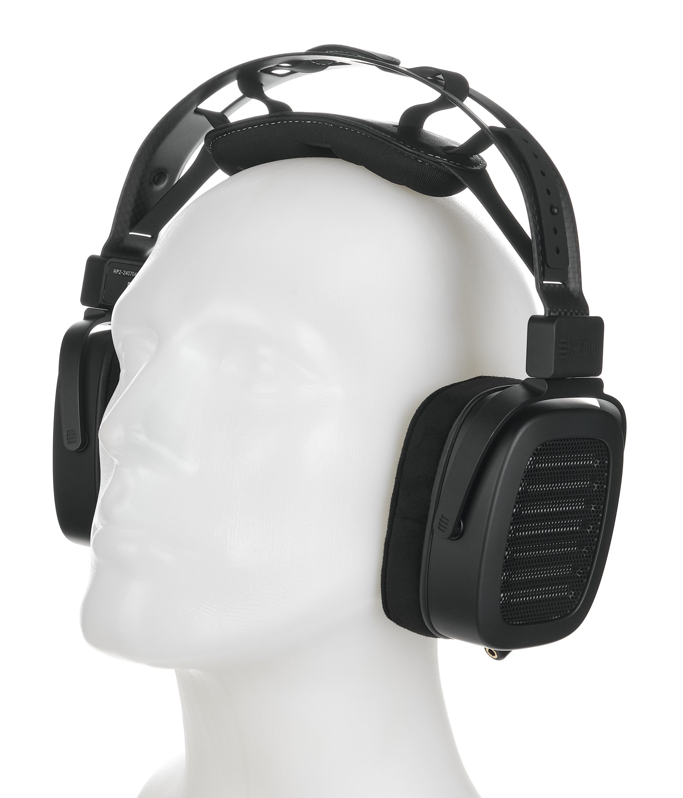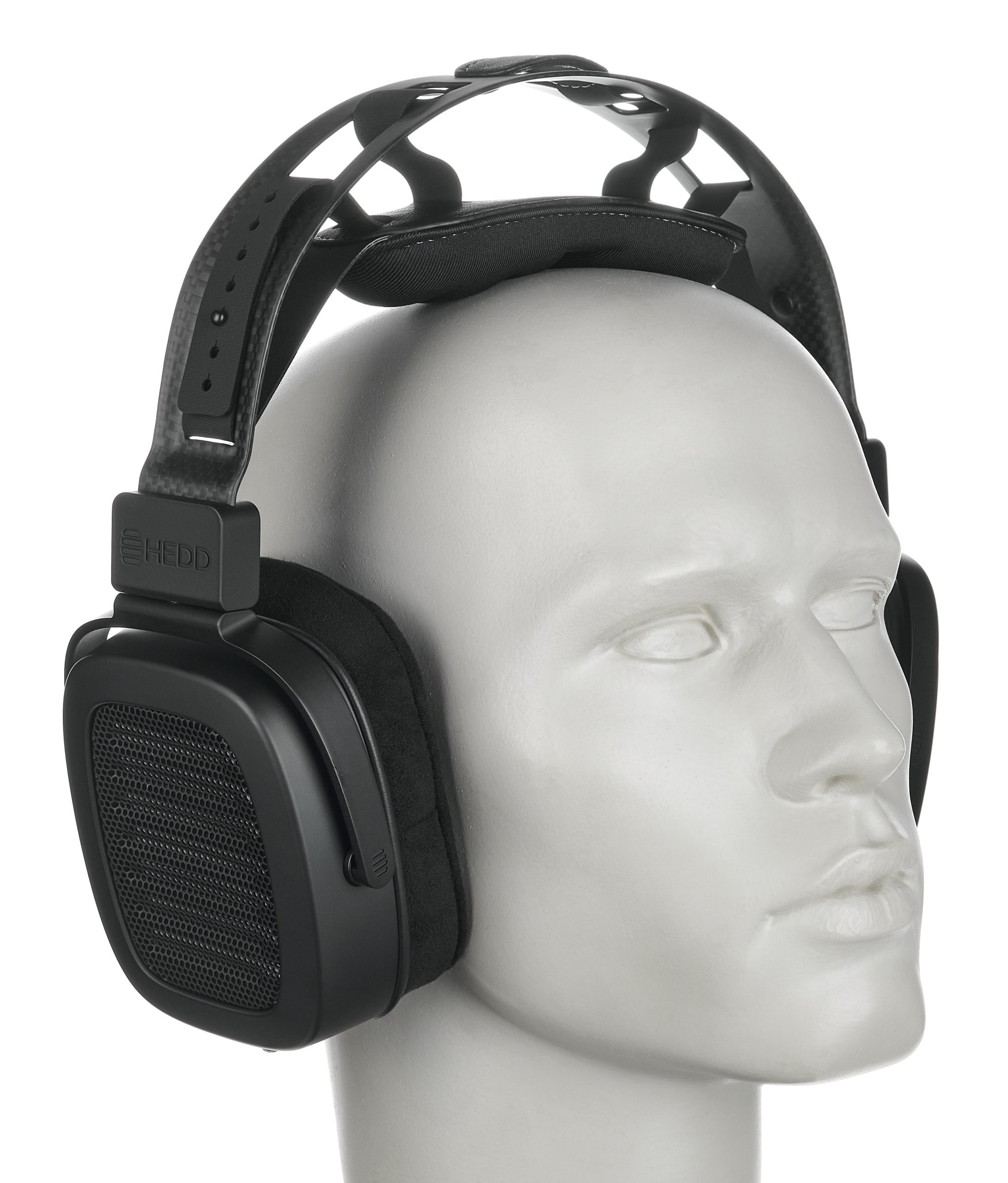 Because of its weight and size, the padding and headband design of the HEDDphone TWO GT is a crucial issue. The ear cushions are mounted on a carbon fibre bracket that allows them to swivel and tilt, and they are also slightly angled inwards. The HEDDband really does allow the fit and clamping force to be varied independently. As a result, this tester can be worn comfortably for long periods of time. However, the design is not intended for rapid or abrupt movements, but rather for listening while sitting on a couch or in an armchair.