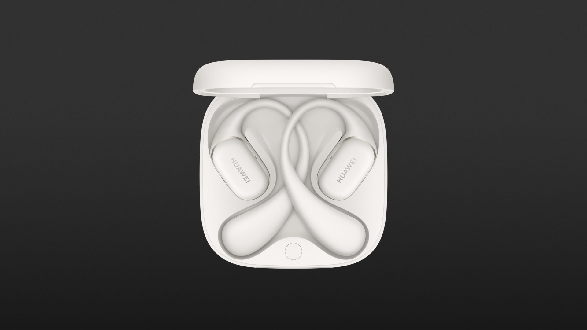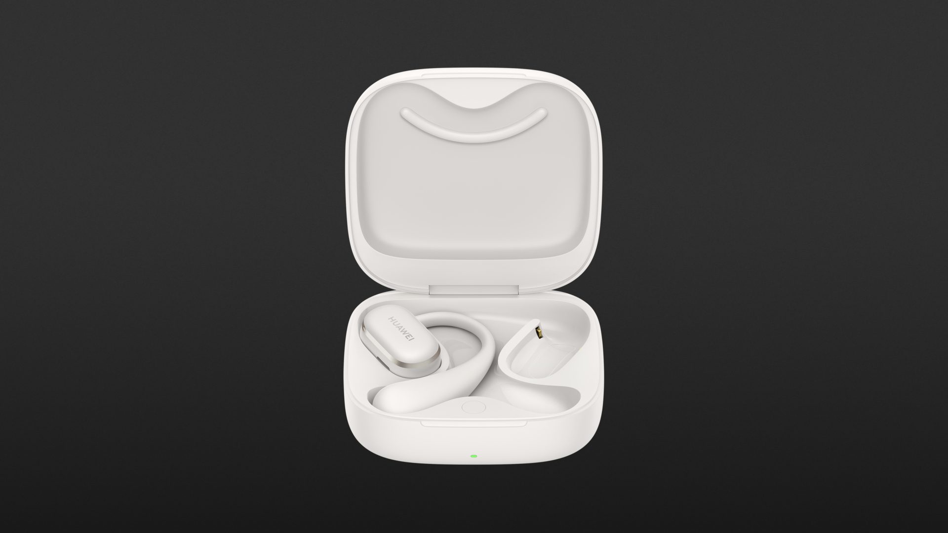 Inside the box, you’ll find the Huawei FreeArc headphones plus a charging case with a USB-C port. There’s no charging cable included, and the case does not support wireless charging. Huawei calls its ear-hook design the “C-Bridge Design,” which aims to provide a secure and comfortable fit that won’t slip, even during strenuous activities.