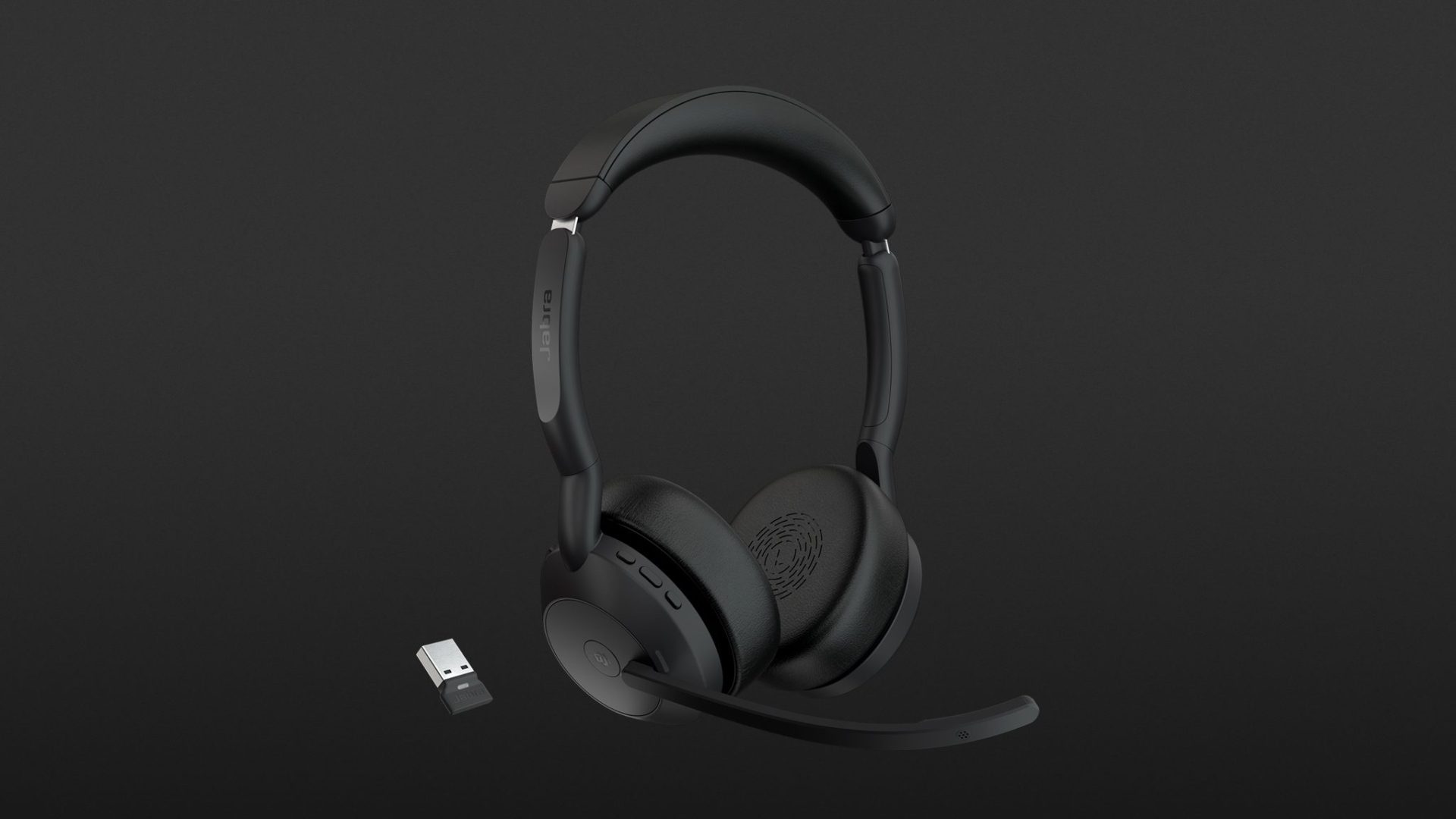 The Evolve2 55 is offered by Jabra in different configurations as a mono or stereo version. There are differences in the connection method, with USB-A or USB-C versions with a corresponding Bluetooth adapter and charging cable available. In addition, one version is certified for Microsoft Teams, whereas the UC model is tailored to Google Meet, Zoom and other common communications platforms. If you wish, you can also purchase the headset as a bundle with a desktop charger, although the docking station was also available separately.