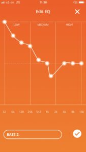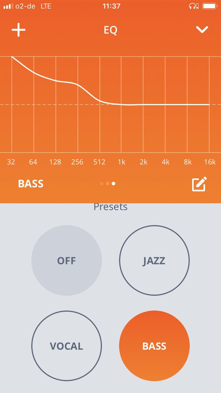 In this way, the Live 220BT can be operated conveniently. The free iOS/Android app “JBL My Headphones App” is also available. Here, you can call up functions such as automatic switch-off of the headphones, communication modes, firmware updates and a powerful, customisable equalizer, which allows you to freely set the number of bands, the operating frequencies and their hub via buttons and save them as a preset. Exemplary!