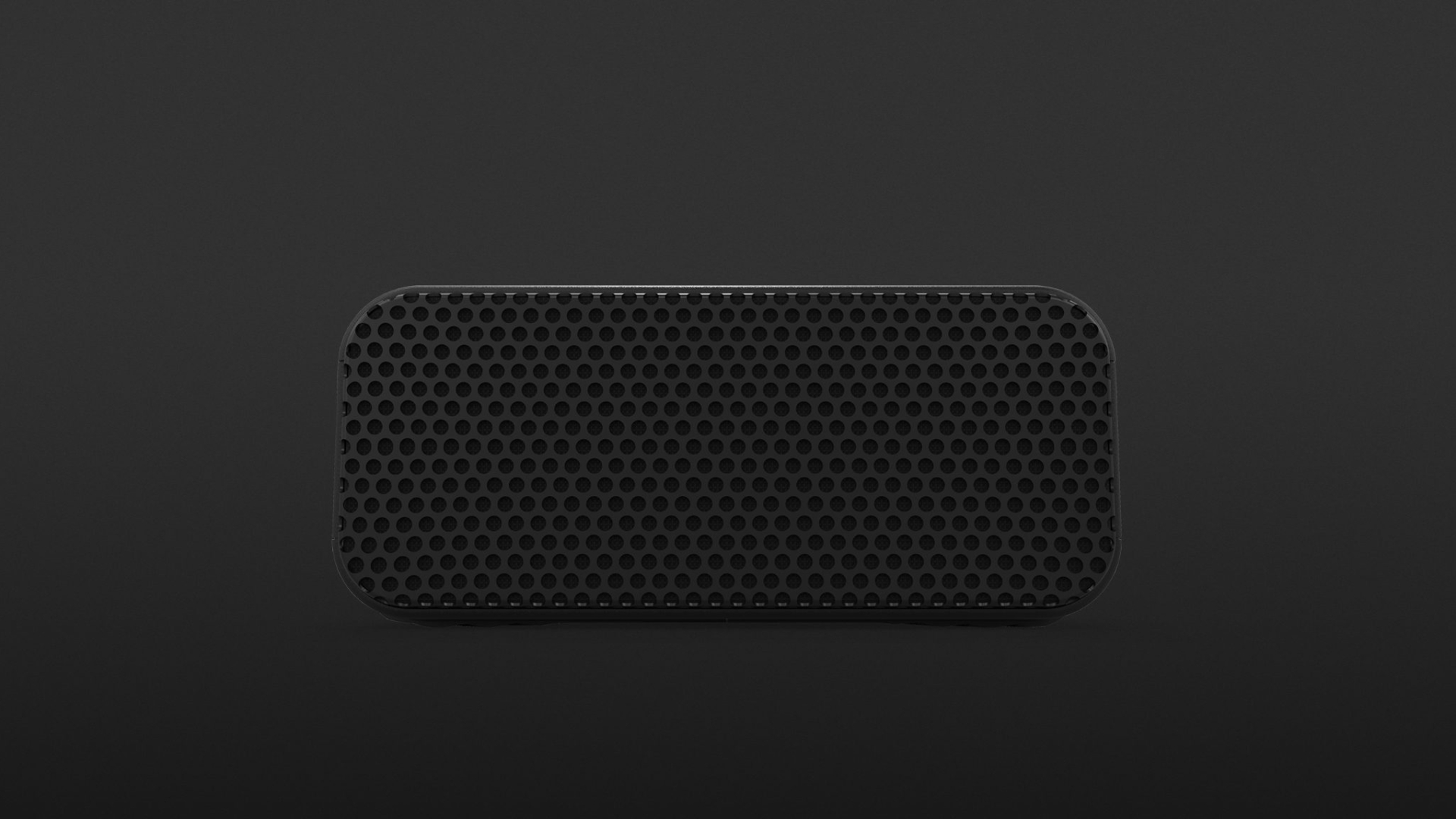 This speaker has a sturdy design and has a perforated grille cover at the front and rear; a thick, cross-ribbed rubber band runs around the speaker for protection and separation. However, this ribbing ensures that the mobile speaker will always tilt slightly when placed on a flat surface (table, shelf, etc.) during operation. Behind the perforated grille cover, the black fabric protects the innards, but the workmanship of the cover could have been better: If a perforated grille like this is bent or creased, it invariably results in uneven edges and distortions. This becomes especially apparent where the manufacturer’s logo has been pressed into it.