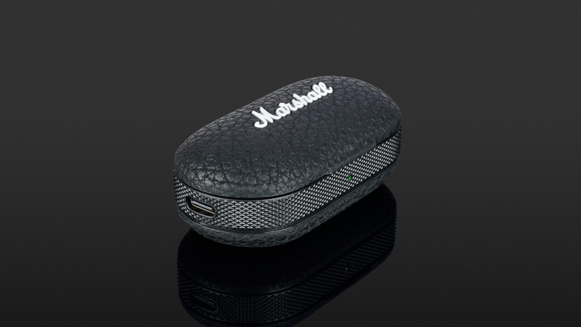 In standard operation, the Marshall Mode IIs achieve a runtime of four hours and 40 minutes per charge with the volume turned up. This is reduced to four hours when ambient mode is used. The in-ears can be fully charged three times and a further 70 per cent charge, giving a total runtime of 21 hours and 40 minutes in basic mode, while 18 hours and 45 minutes are available in transparency mode. Although the earpieces offer a rather low battery life, which among other things might be due to their low weight and the small housings, a charging cycle takes almost two hours; therefore, the system does not necessarily seem suitable for longer trips. However, the case’s battery reserve is restored after 60 minutes of charging via the USB-C port, for which a USB-C to USB-A charging cable with a length of 100 centimetres is included. Alternatively, the case also supports wireless charging via Qi.
