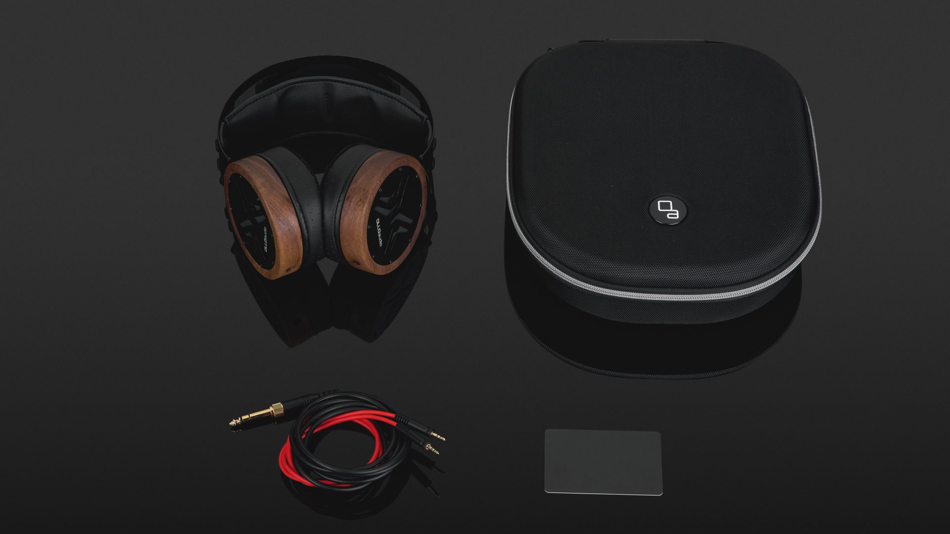 Handmade in Slovenia, the Ollo Audio X1 comes with an unsymmetrical detachable cable with a mini-jack plug, connected to both ear cups. It is mostly black, with the cable ends after the Y-split in signal red. A screw-on adapter for a full-size jack is included, along with a registration card and serial number, needed to download the calibration software. For its price class, the package is “solid.”