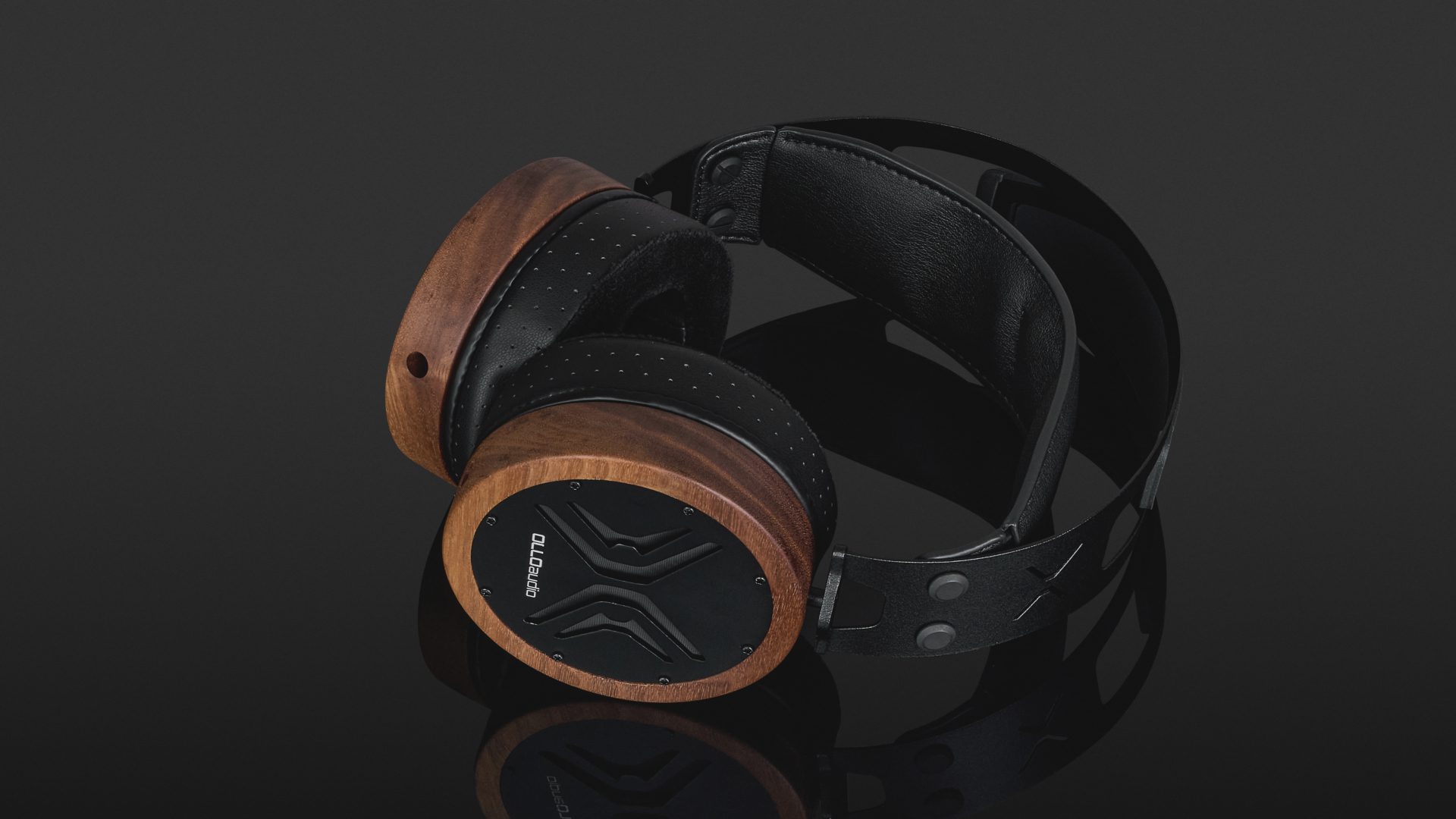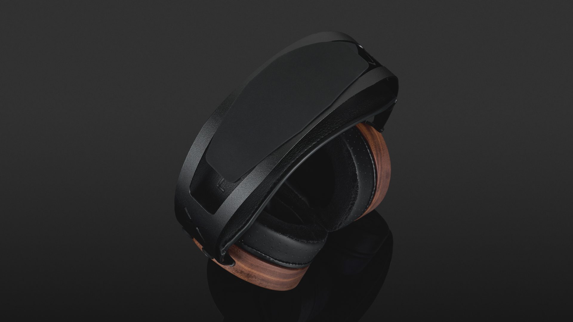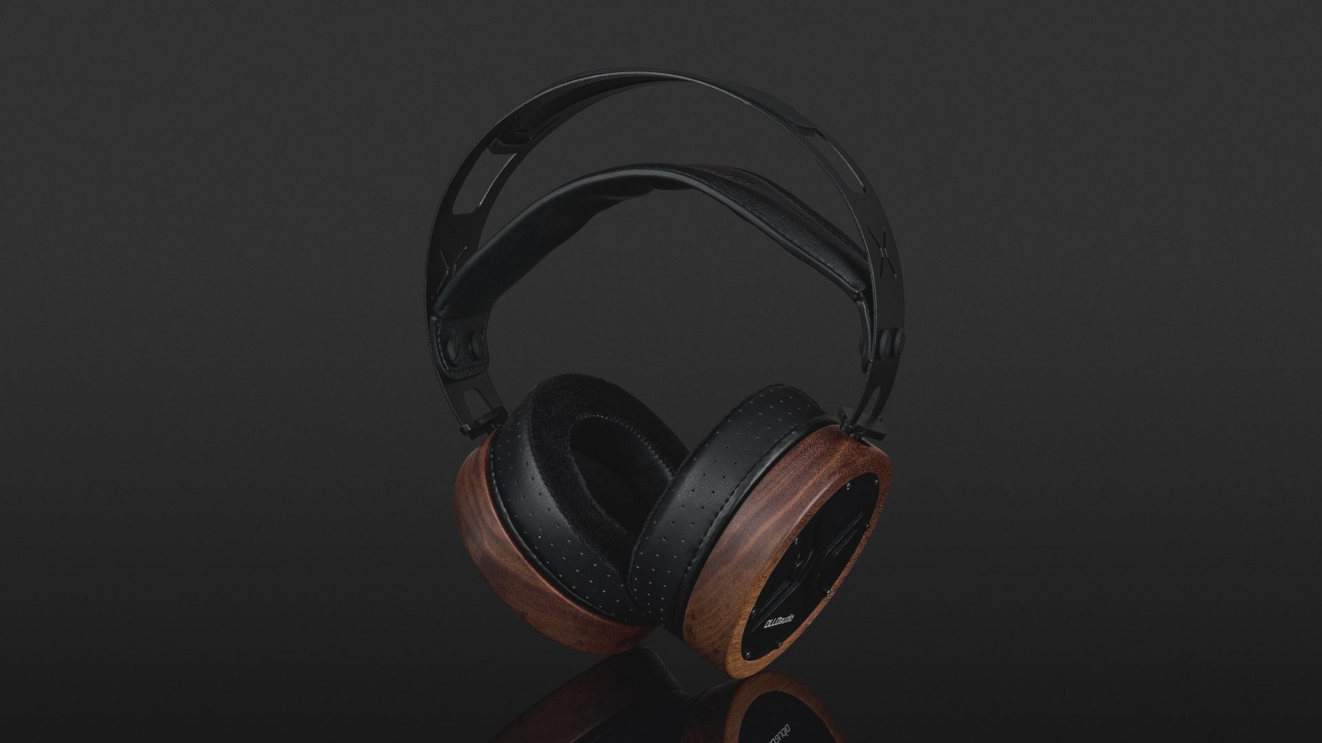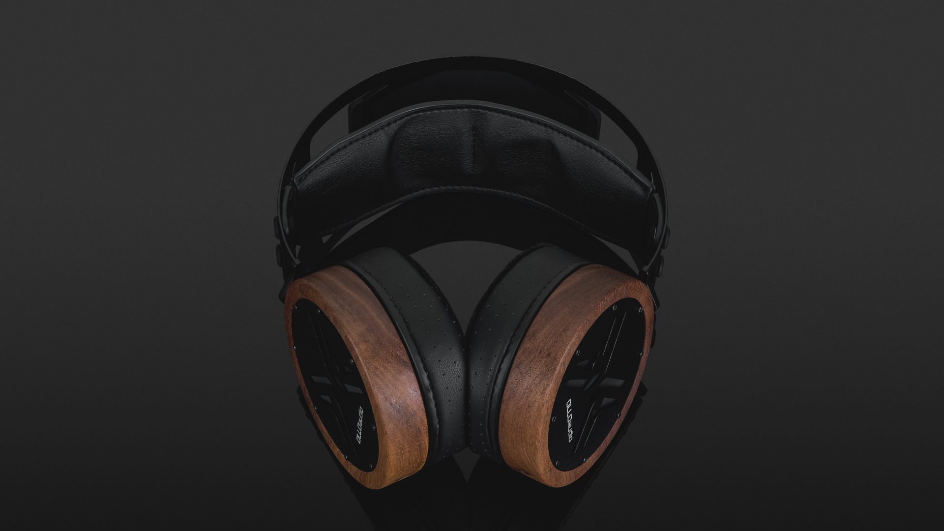 The headband is made from stainless steel, making it robust and durable. A silicone insert appears to dampen the structure-borne sound of the metal frame. The ear cups are CNC-machined from a single piece of American walnut and can rotate freely 360 degrees. The rear is covered by black lacquered metal plates with large openings.