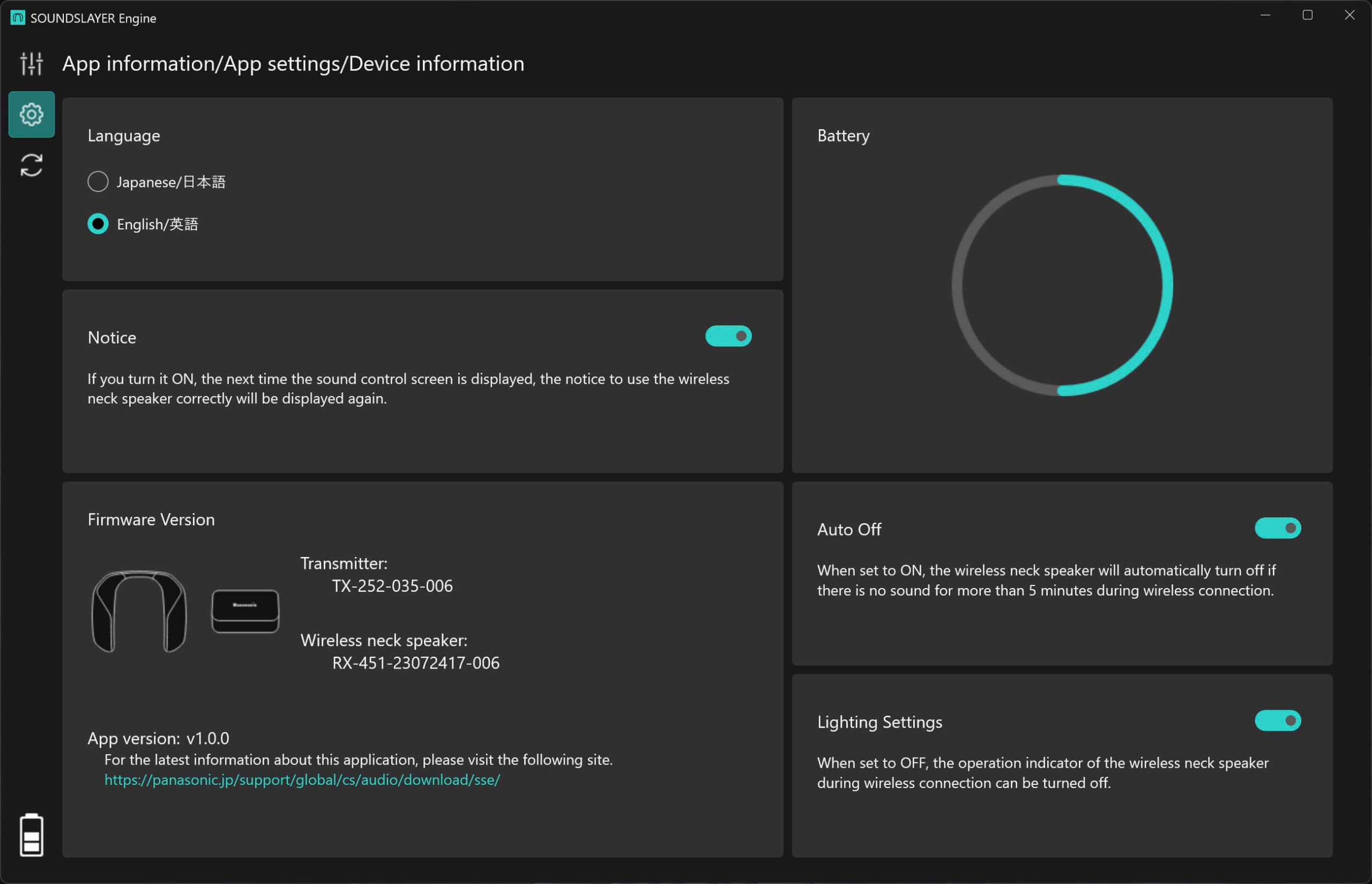 According to the manufacturer, the Panasonic SoundSlayer SC-GNW10E supports the PS4 and PS5 as well as the Nintendo Switch in TV mode and Windows 10/11. However, this neck speaker also works perfectly with macOS or an Android smartphone, but the SoundSlayer Engine app, which can be used on a PC, is not available for Mac and Android systems.