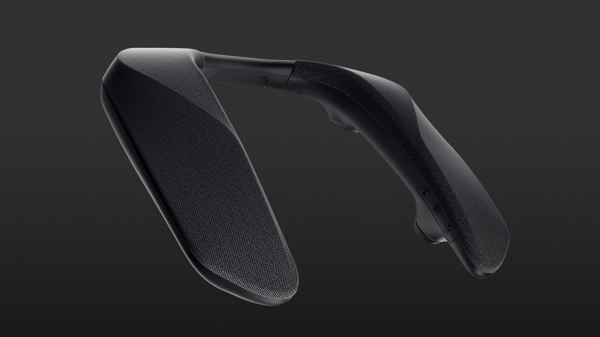 Devices with wearable neckband speakers are not new, Panasonic has also had the SC-GN01 SoundSlayer on the market for some time. That model did not work wirelessly, and it has to be connected using a USB cable. This restricted the wearer’s freedom of movement, so it makes much more sense for such a device to use a wireless system. In the case of the SC-GNW10E, however, wireless freedom costs 50 euros more than the wired SC-GN01 model.