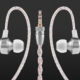 The first thing that strikes me is the unusually long, transparent and twisted-down connection cable with a length of almost 1.50 metres. It is heavily encased, making it robust and less prone to typical knots. The other workmanship is exemplary, as the earphones, plugs and centre piece are all made of stainless steel. This not only looks classy but, according to the manufacturer, also leads to lower distortion in the earphones due to the explicitly high density and low resonance of the material, even at high volumes. At the same time, the attractive in-ear pieces should prove to be durable, even though the connection cable is unfortunately not interchangeable. The transformer used is the in-house CL Dynamic ultra-wideband transducer with a ring-shaped magnet and a 9 μ membrane, which, again according to the manufacturer, is characterised by its particularly wide frequency range and is suitable for high-resolution audio material.
