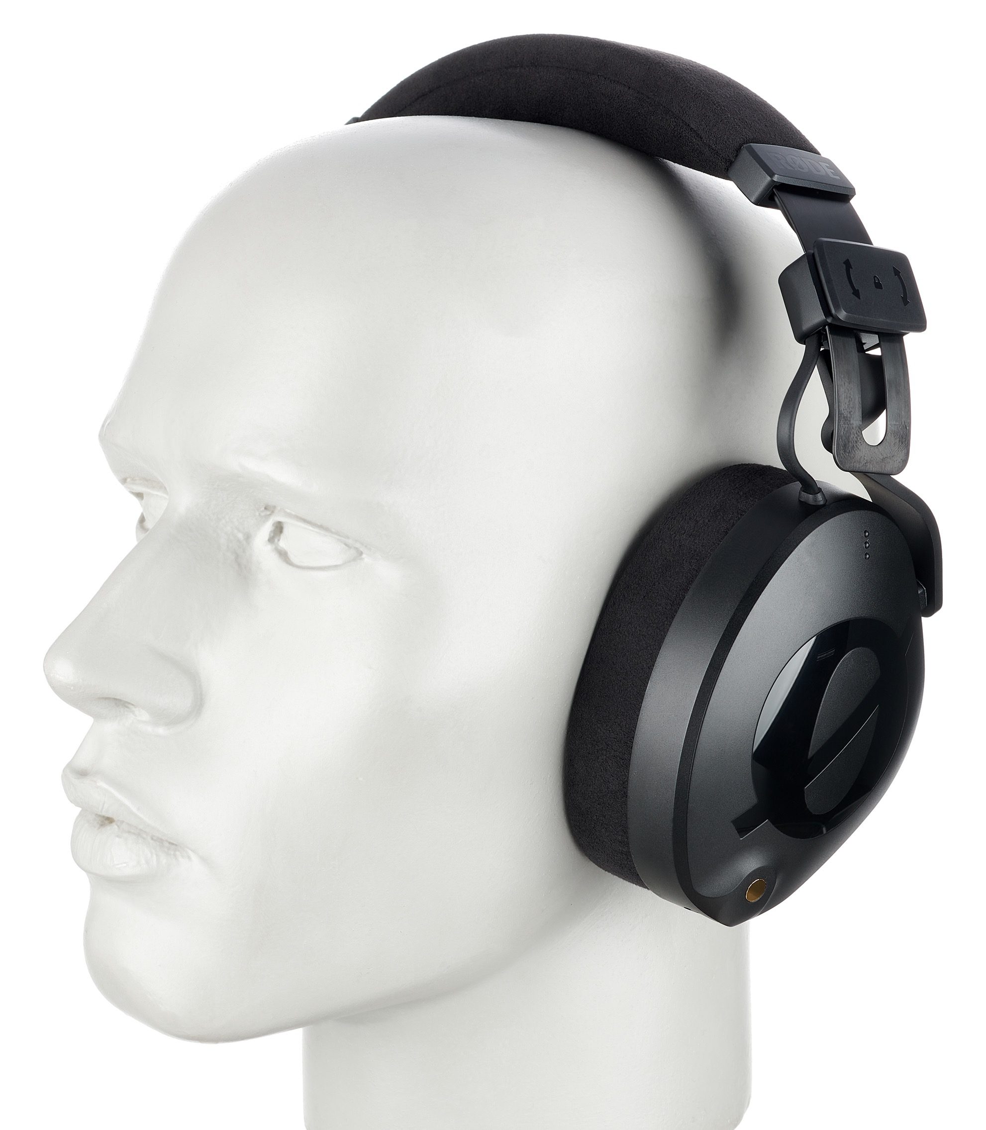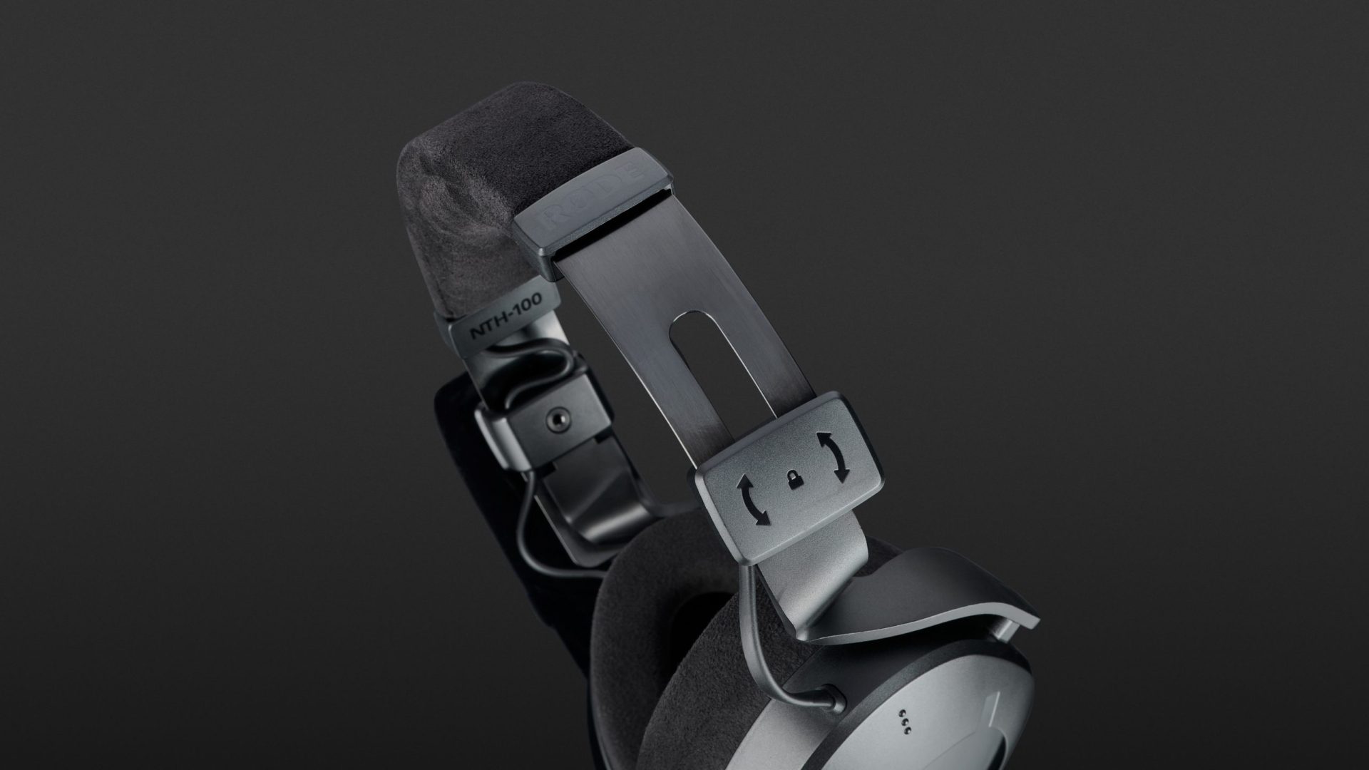 The construction of the Rode NTH-100, which is produced in Sydney, Australia, appears solid and robust. The outer shells of these headphones are coated to protect them from scratches, and the headband features a spring steel bracket for greater durability and stability. Visually, these headphones offer an interplay of familiar, classic construction and modern design elements. This includes Rode’s use of discreet glossy black lettering on a matt black background. Technically, these headphones surprised us with a single-sided cable routing that allows both left and right connections. The earcups are ergonomically shaped and equipped with a special closure system. The velvety surfaces of the replaceable headband cushion and the replaceable ear cushions are made from the breathable synthetic Alcantara suede. This upper layer is lined with heat-repellent gel pads, which should guarantee a cool head even during longer sessions. Memory foam is supposed to ensure an optimal fit and is not only comfortable but also provides good sound isolation.