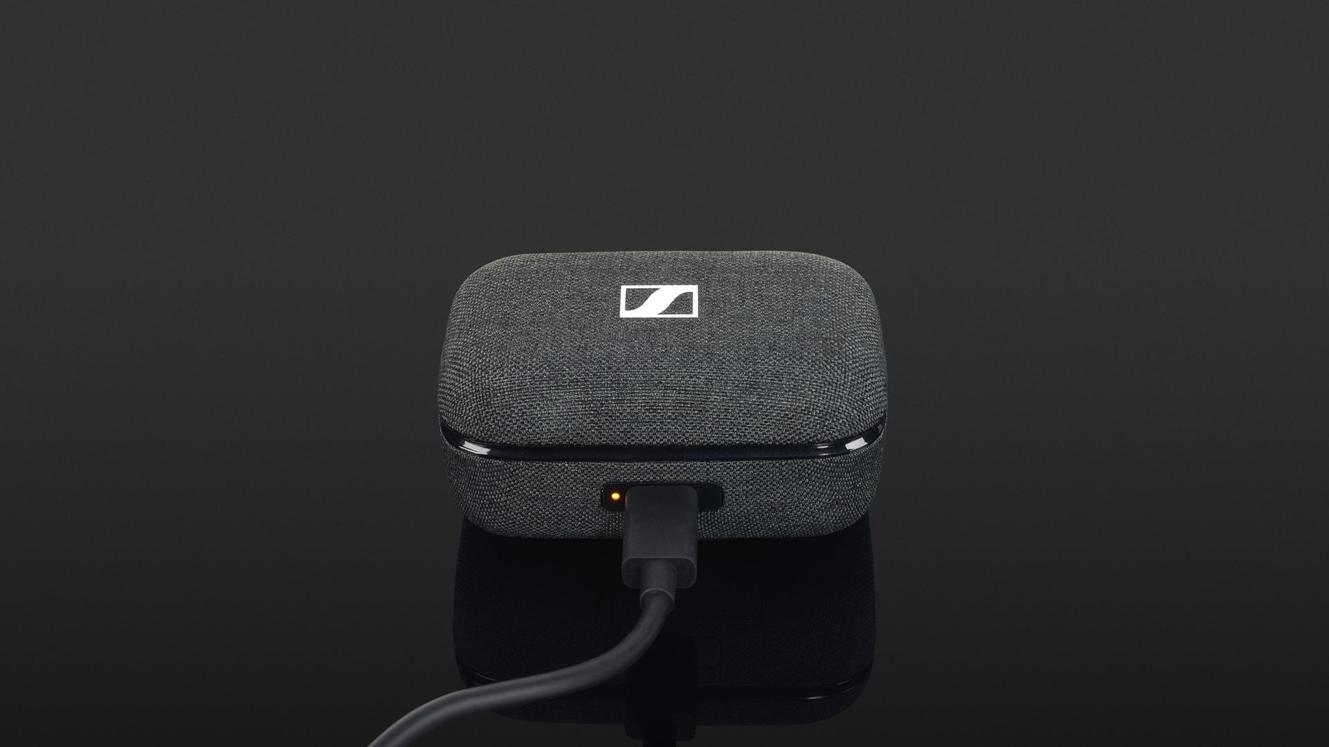 Two years after the Momentum True Wireless 2, version 3 introduces a slightly different design: the edges of the earpieces have been smoothed, their rounded shape looks more modern and ergonomic and also saves weight. The new charging case has gained some weight and continues to feature Sennheiser’s signature fabric cover. The battery performance, however, has remained the same: these in-ears can run for seven hours, and the case can then charge them up to three times so that a total runtime of 28 hours can be achieved. The USB-C port has moved from the back to the front, and the case can be charged wirelessly on Qi-compatible charging mats.