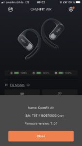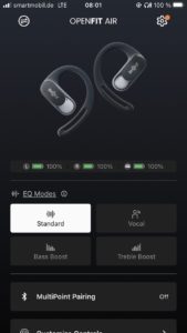 A certain amount of pressure can also be felt at higher levels. Nevertheless, it was noticeable that they use a cheaper driver than the more expensive OpenFit. The reproduction was quite balanced in the central frequency range but tended to be slightly tinny in the mid-range spectrum. As expected, the OpenFit Air did not sound very full-bodied in the bass range and you have to do without low bass. Nevertheless, “loaded” mixes did not lead to annoying distortion. The OpenFit Air should, therefore, be evaluated in the context of their objective, namely the possibility of constant exchange with the environment without sacrificing listening to music.