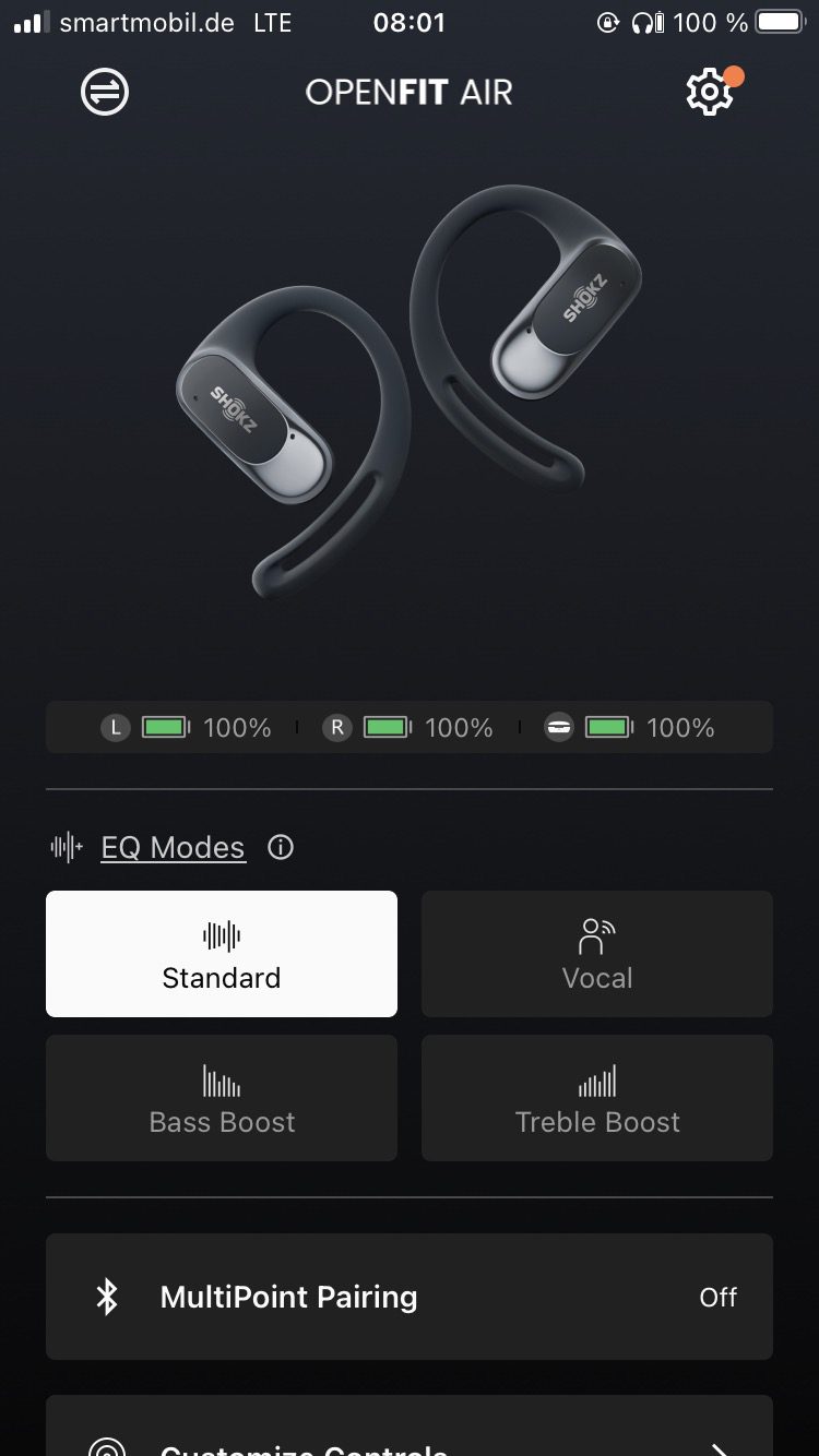 The core competency of this design is communication. The OpenFit Air deserve compliments for convincing call quality in both directions, and this can also be done quietly. The sound was predominantly perceived by the person on the other end of the line as loud, powerful and easy to understand. Added to this, the AI-supported noise cancelling (Qualcomm cVc 8.0) deals with a good proportion of background noise during conversations and thus focuses on the voice even in noisy environments. However, this was only one side of the coin. During long phone calls, I occasionally had phases in which the person I was talking to mentioned a sudden distance in the sound, even though we were not even touching the headphones. I was unable to find out the reason for this during our test.