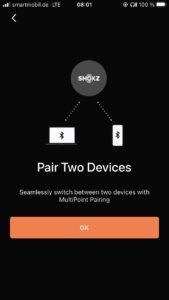 The battery performance is stated by Shokz as four to six hours of average usage time, and this can be increased almost fivefold thanks to the capacity of the case. The charging time is 60 to 120 minutes, but there is a function for quick “intermediate charging”. A 10-minute charge provides up to two hours of additional capacity.