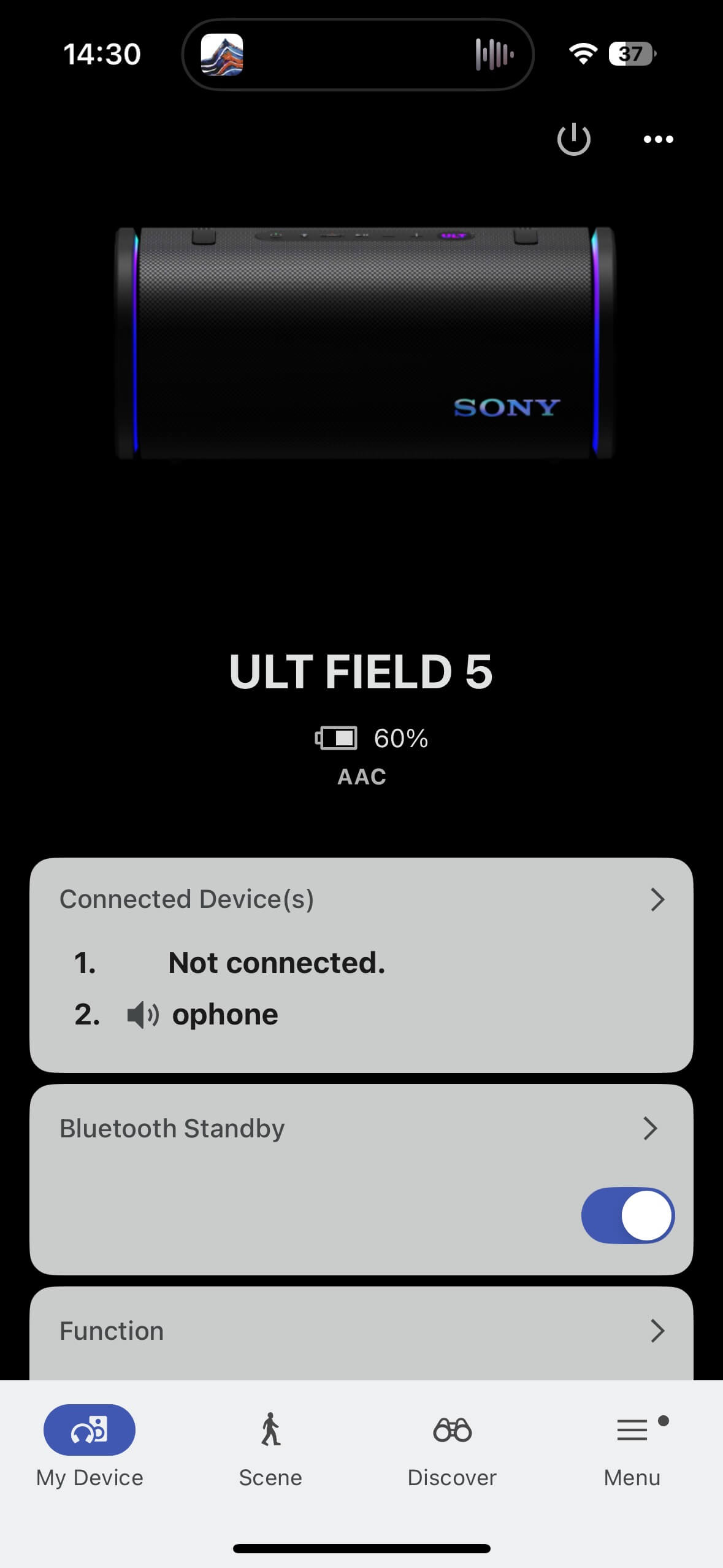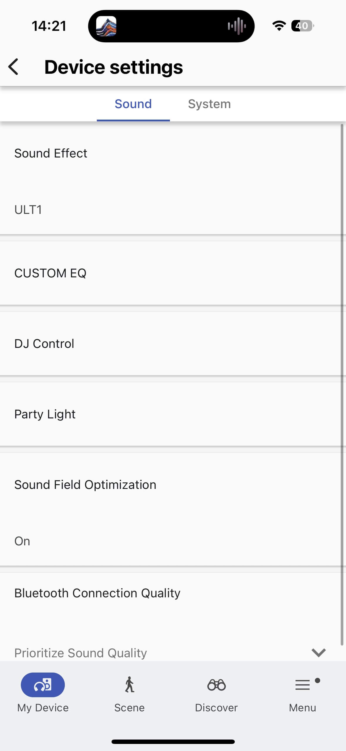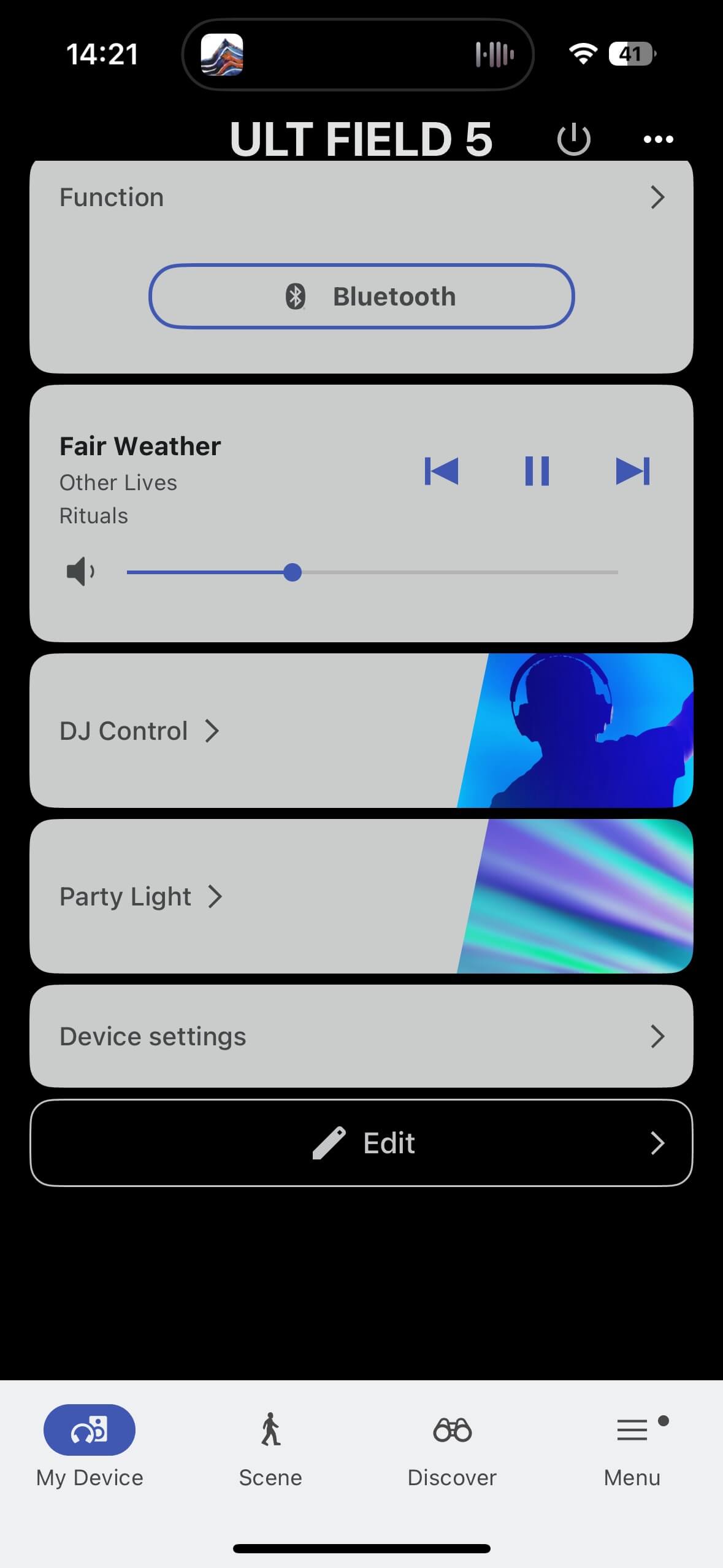 Some control inconsistencies are worth noting: EQ settings can be changed via DJ Control but not reset from there – only from the main EQ menu. Similarly, lighting can be reset in Party Light, but full deactivation or mode changes are only possible under System > Device Settings or via the rear panel. Still, these are nice extras to enhance the party atmosphere with the ULT FIELD 5.