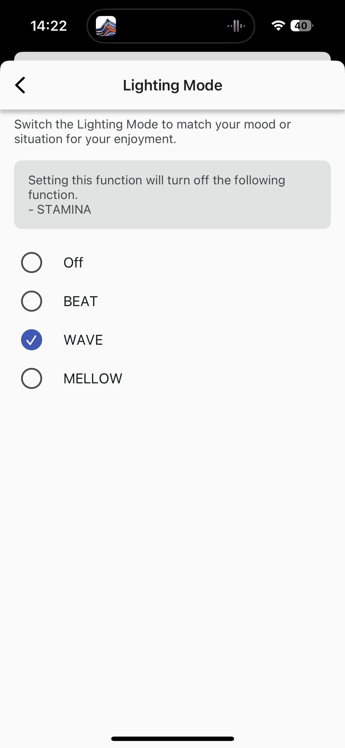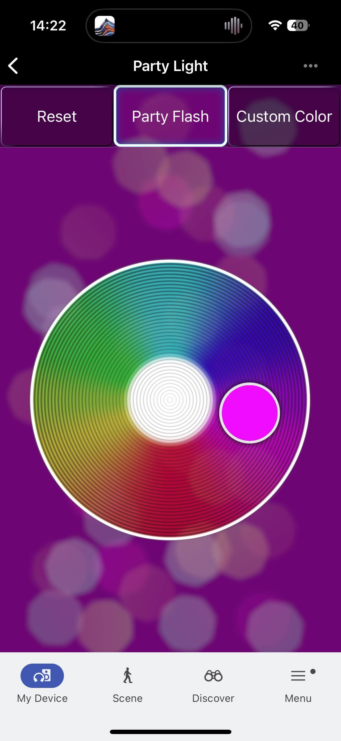 Party Light allows customisation of the built-in lighting, including choosing a favourite colour – though in practice, the lights are so subtly integrated that changes are barely visible. You’ll need to look closely to see the effect of your input.