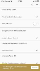 The controls on the device are comfortable to use but functionally limited by the two touch fields on the outside of the earpieces. For further configuration, Sony uses the free app “Headphones Connect” (iOS, Android) and also provides multilingual language assistance.