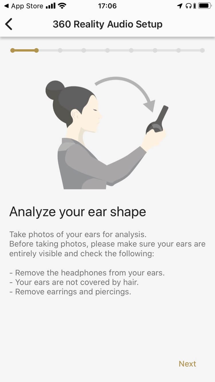 Another exciting feature of these headphones is their support for 360 Reality Sound. Here, Sony is trying out a three-dimensional sound image (immersive audio), which can be accessed via streaming services such as Tidal, Deezer or nugs.net where appropriate content is available. The app also allows users to take photos of their own ears and incorporate their specific form into the processing of sound.