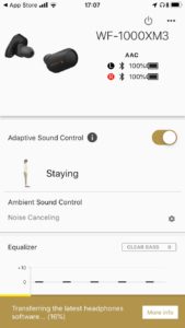 Even without EQ they hit hard. Due to their good fit and noise cancelling, the results are a thoroughly enjoyable music listening experience. In the bass, the headphones are contoured with corresponding boundaries of pitch, length and dynamics. The WF-1000XM3 sound quite rich but don’t exaggerate, and the same goes for the perfectly audible low bass. In the midrange they push distorted rock guitars, transmit voices with clear intelligibility and give instruments like an acoustic grand piano the necessary warmth and space. Also quiet music like classical or Nick Cave’s current album “Ghosteen” can really be enjoyed with these headphones. Finally, in the treble range, they reveal a lot of detail, although I felt they ultimately lacked transparency and airiness. I didn’t find any unnecessary harshness, but rather a meaningful sense of limits with the appropriate passages in the source material. The noise-cancelling function influences the perception of sound, as with noise-cancelling switched on there was an improved signal-to-noise ratio and also a noticeable pressure boost.