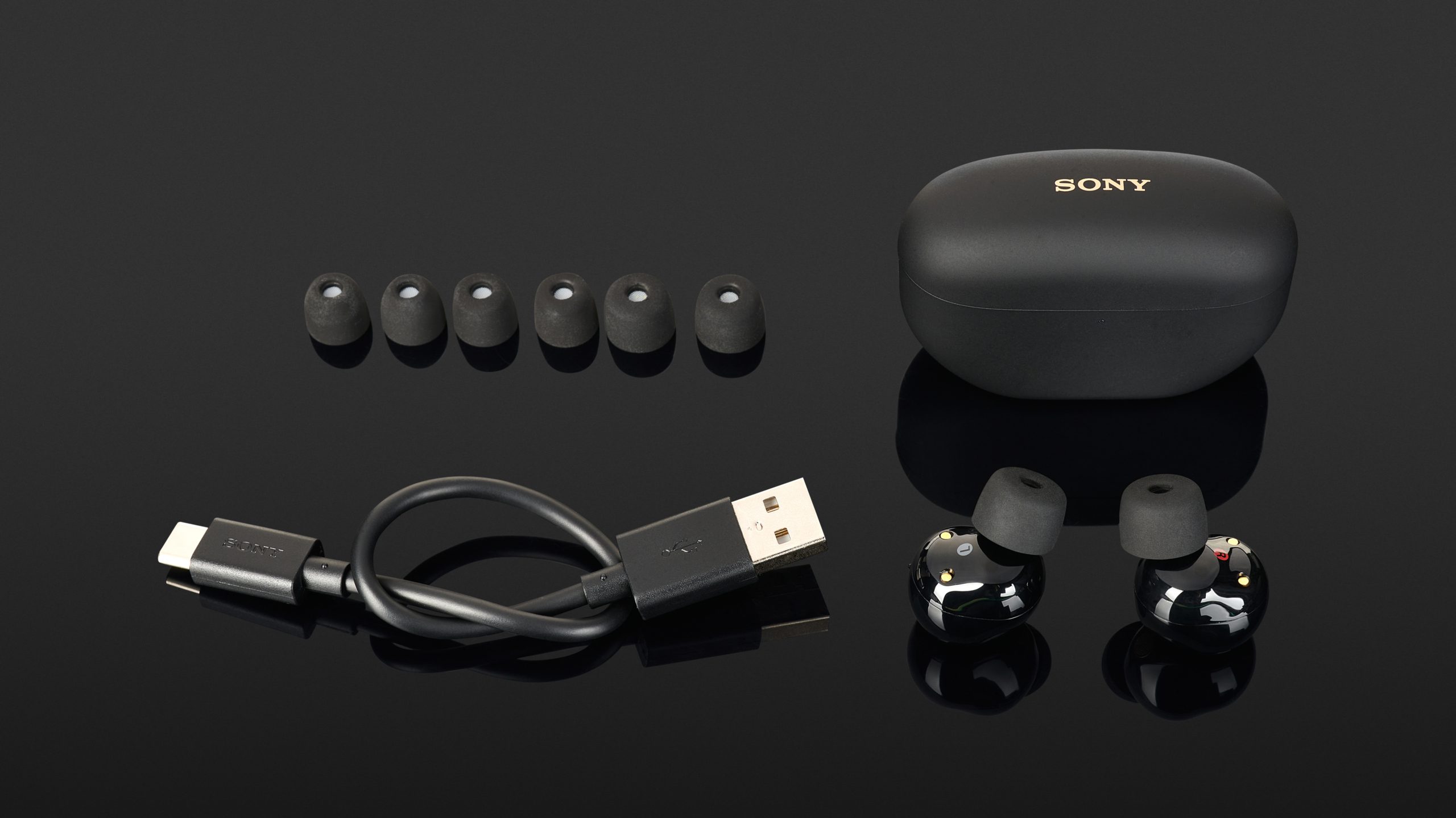 Now in their fifth generation, Sony has succeeded in creating excellent-sounding True-Wireless headphones that provide plenty of listening pleasure. The basic prerequisite for a full frequency response is the right fitting pieces, and these are included in three sizes and made of polyurethane. A measurement of the air pressure is also available in order to determine the fit of the earpieces in the ear.