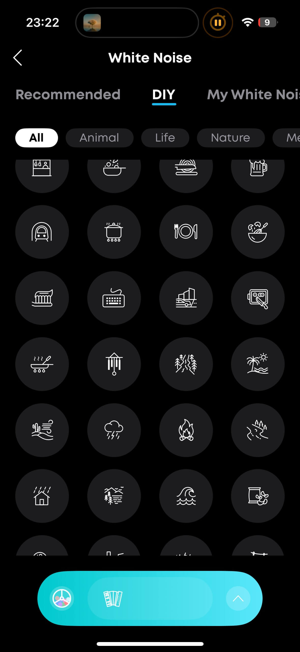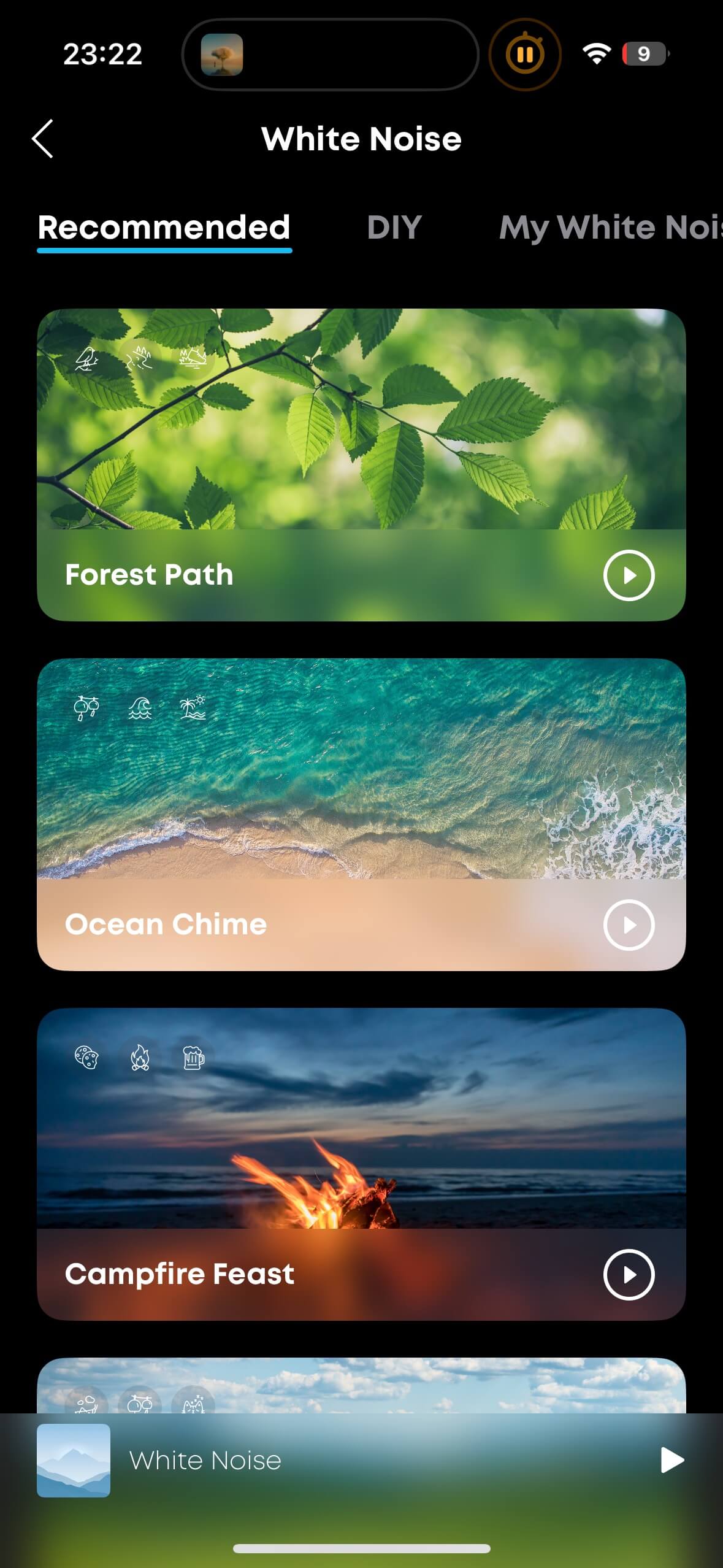 In the “White Noise” section, things get wild. You can enjoy relaxing soundscapes from five presets or create your own mix using an extensive library of sounds – from birdsong, crackling, and chewing to Buddhist flutes – supported by a random generator that produces truly bizarre combinations, with adjustable individual volume levels.