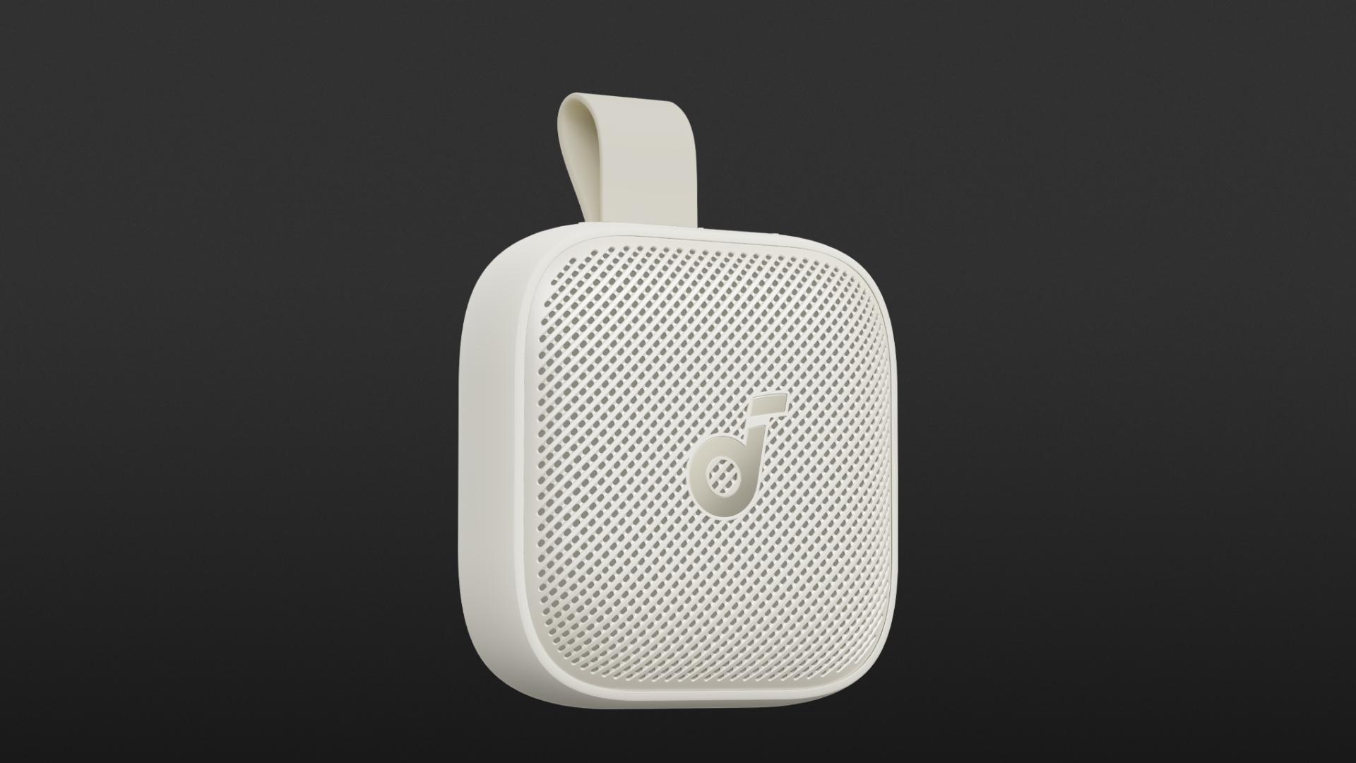 The Soundcore Boom Go 3i comes in four cheerful colors: black, beige, blue, and pink. Thanks to the elastic carry strap — which works both as a wrap-around attachment and as a loop for hanging — those 380 grams are easy to manage. And if the speaker takes a tumble from a meter up, that’s not a problem either: the combination of impact-resistant plastic, silicone casing, and a sturdy front grille keeps it well protected.