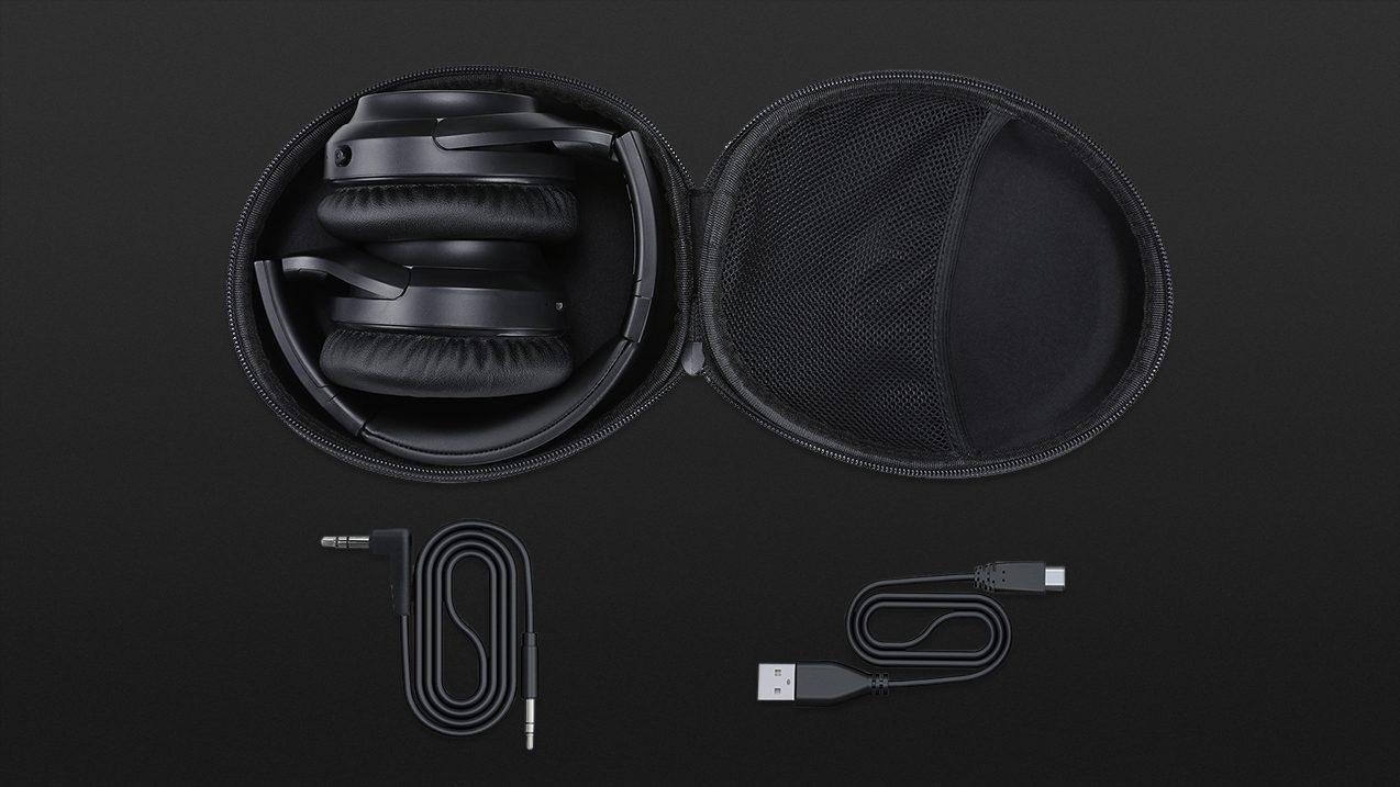 With active noise suppression, the over-ears can run for up to 15 hours, while without ANC they can run for up to 24 hours. When the battery is empty, the quick charge function can be used, which allows up to two hours of use after five minutes of charging time when using a 2A USB wall adapter. Since there is also a 3.5 mm audio input, wired use is also possible as an alternative to Bluetooth operation. In addition to the USB charging cable, the accessories include a corresponding mini-jack cable with gold-plated plugs.