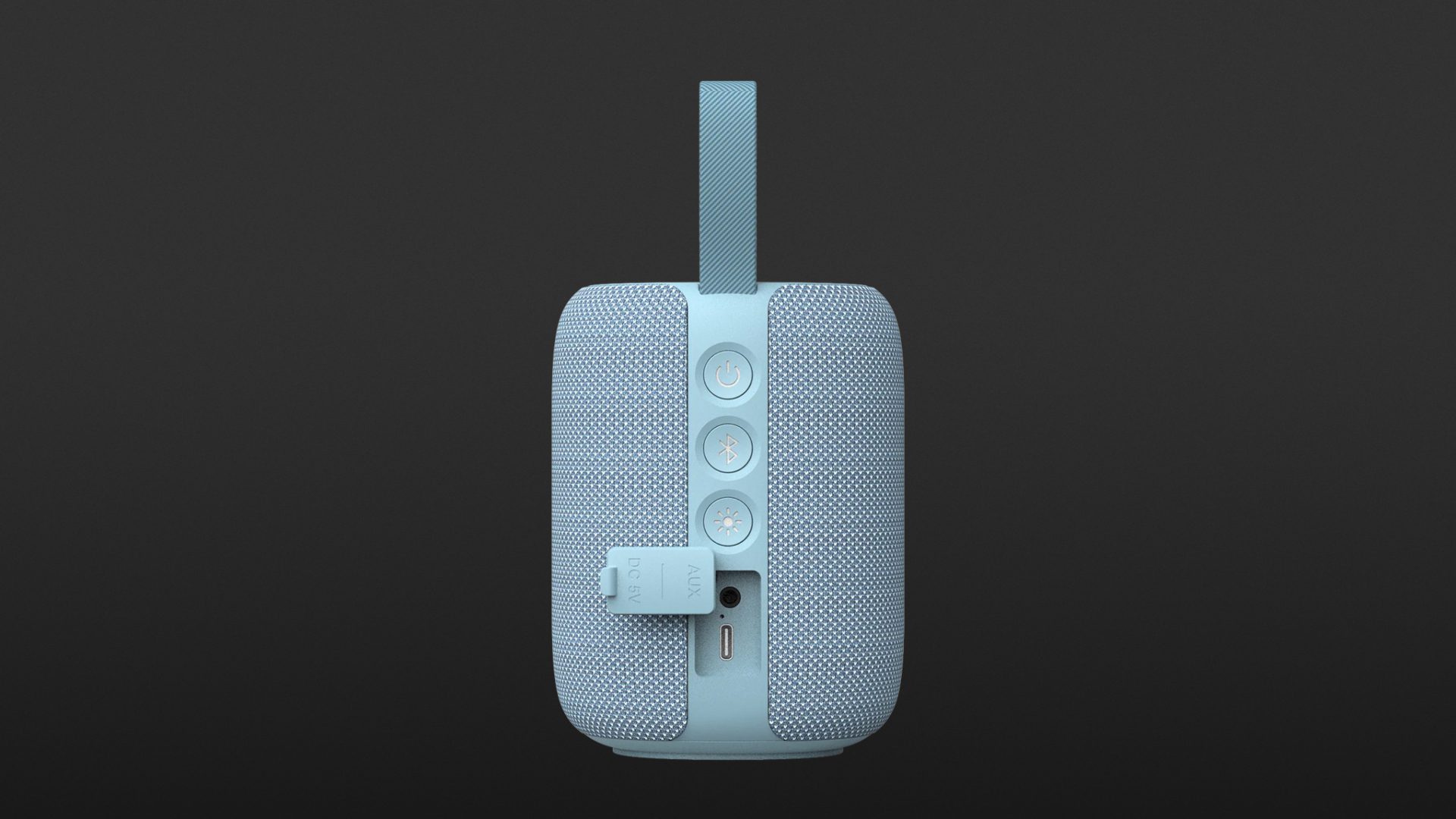 The upright cylinder is dominated on the front by three prominent playback control buttons. On the back are three switches for power, Bluetooth pairing and the light feature, plus – behind a protective rubber flap – the 3.5 mm aux input and USB-C charging port. On top sits a passive radiator encircled by a ring-shaped light element.