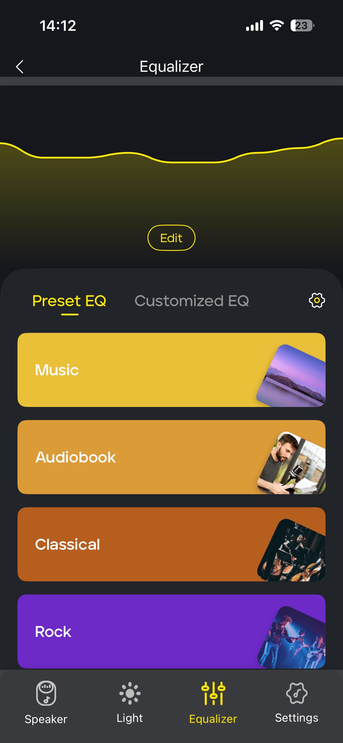 Paired with the app (Android/iOS), the sound can be adjusted via five EQ presets or a custom 9-band equaliser. The light feature offers two modes, though neither is particularly expressive; both roughly follow the rhythm of the music.