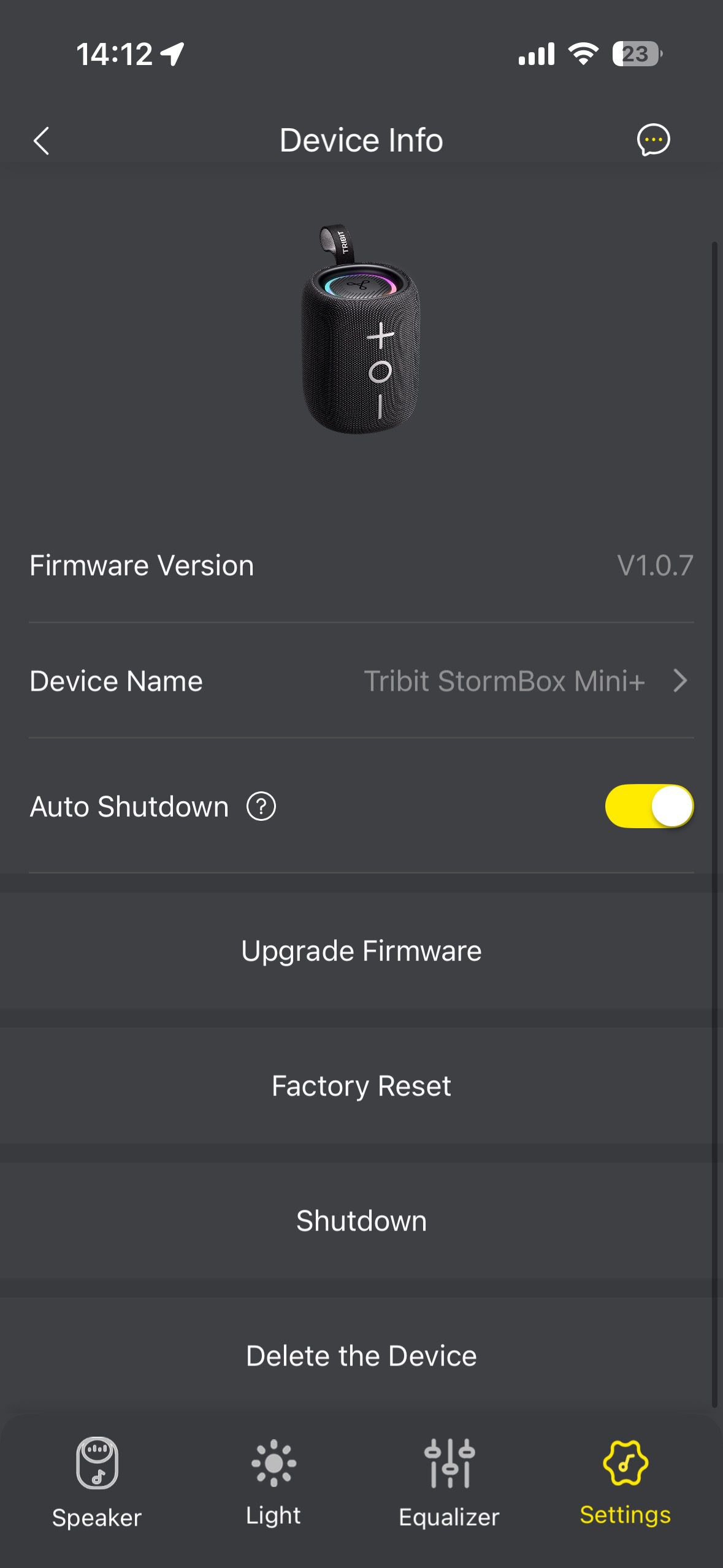 You can set the speaker to auto power-off after inactivity, remotely power it down (but not on), check battery status and firmware, and install updates when available. Overall, it’s a solid if not spectacular feature list.