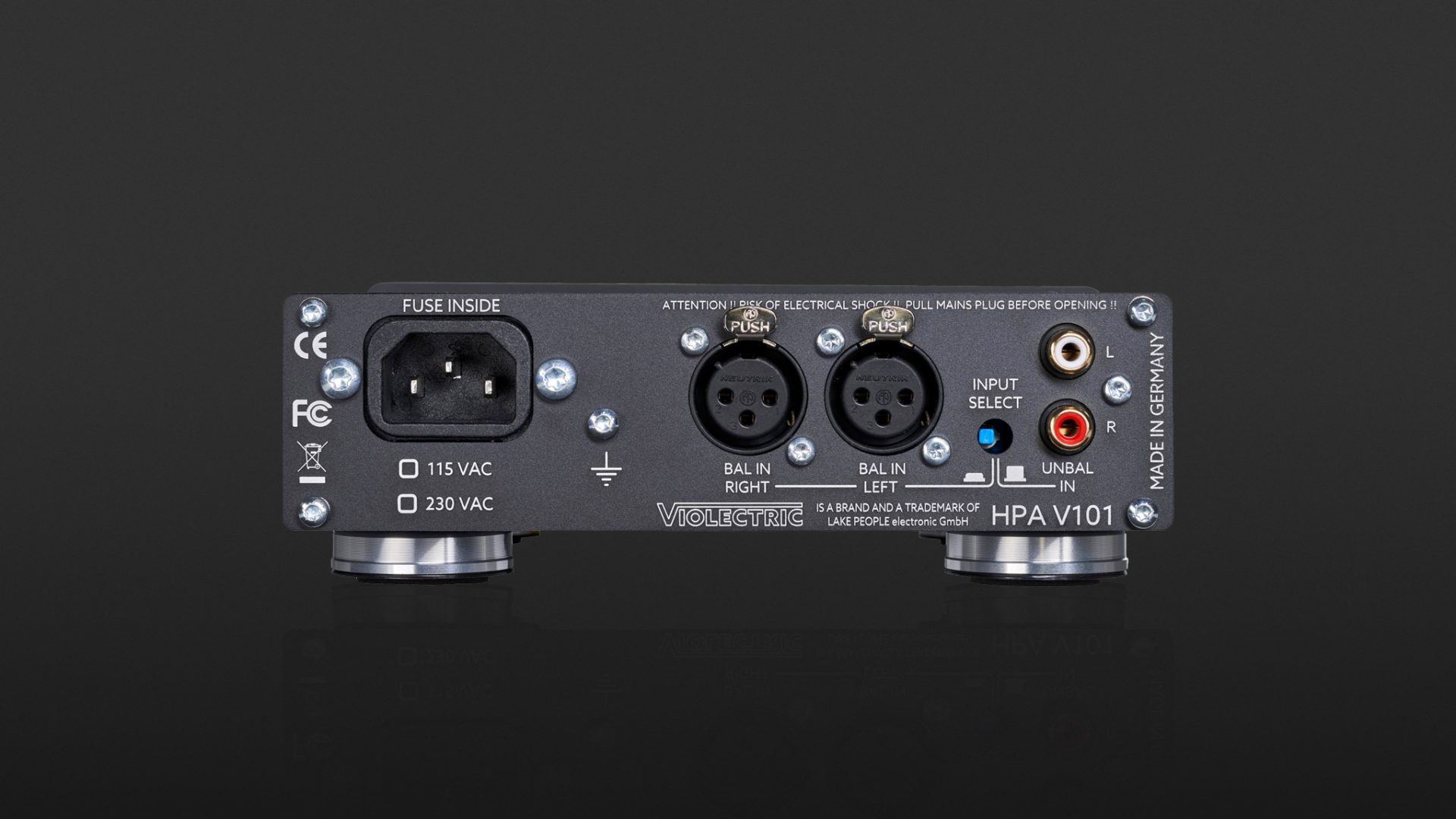 The Violectric HPA V101 has an IEC/CEE socket for the power supply, as well as unbalanced RCA and balanced XLR inputs on the rear, which can be switched using the toggle switch. The headphone amplifier does not have a line output.